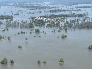 ต่อมา รมช.เกษตรและสหกรณ์ และคณะ ได้เดินทางโดยเรือท้องแบนของ ปภ.ศรีสะเกษ ไปที่บ้านขาม หมู่ 10 ต.บัวน้อย อ.กันทรารมย์ จ.ศรีสะเกษ เพื่อไปตรวจสถานการณ์น้ำท่วม ซึ่งปรากฏว่าตลอดเส้นทางที่เรือแล่นผ่าน น้ำได้ท่วมไร่นา บ้านเรือนของชาวบ้านเป็นบริเวณกว้าง ไร่นากลายเป็นทะเลน้ำจืด ระดับน้ำท่วมสูงประมาณ 3 – 4 เมตร ทำให้หมู่บ้านแห่งนี้ถูกน้ำล้อมรอบกลายเป็นเกาะ ตัดขาดจากโลกภายนอก ซึ่งเมื่อไปถึงบริเวณกองทุนหมู่บ้านบ้านขาม ได้มีว่าที่ ร.ต.ณัฐภัทร คำชาลี นายก อบต.บัวน้อย พร้อมด้วย นายกรินทร์ทอง เวียงคำ กำนัน ต.บัวน้อย นางชุติมา สร้อยจำปา ผู้ใหญ่บ้านขาม หมู่ 10 นำชาวบ้านขาม มาให้การต้อนรับ