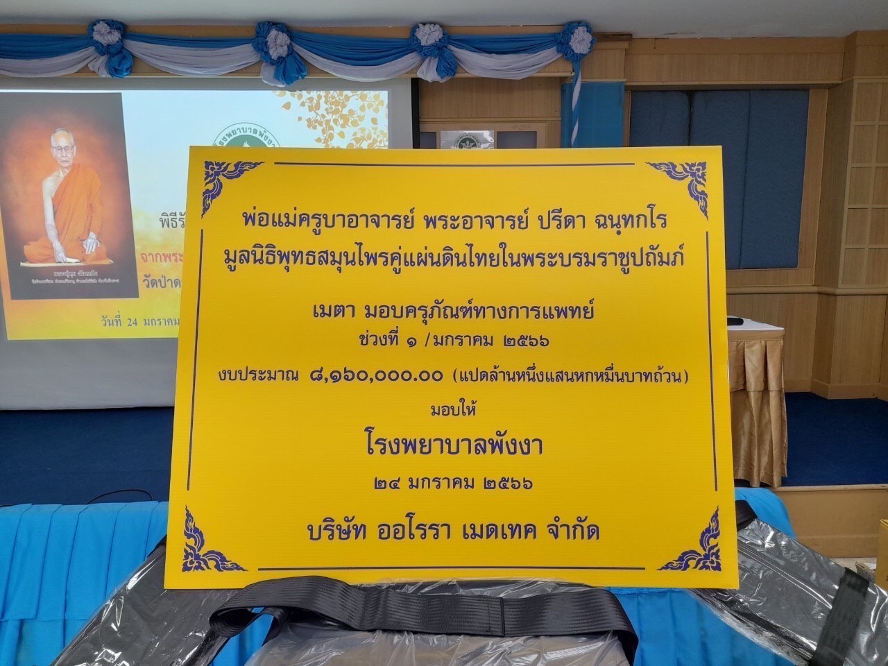 โรงพยาบาลพังงารับมอบครุภัณฑ์การแพทย์ จากหลวงพ่อปรีดา ฉนฺทกโร วัดแสงอรุณ (วัดป่าดานวิเวก) อ.โซ่พิสัย จ.บึงกาฬ