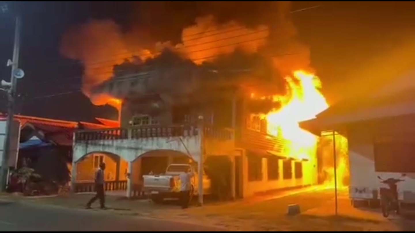 มุกดาหาร เกิดเหตุเพลิงไหม้บ้านครึ่งปูนครึ่งไม้เสียหายทั้งหลัง