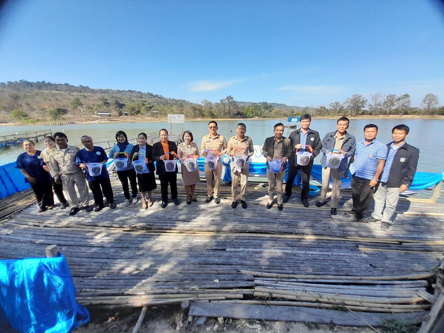 โดยก่อนการประชุมได้เยี่ยมชมโครงการธนาคารผลผลิตเกษตร กิจกรรมสนับสนุนธนาคารผลผลิตสัตว์น้ำแบบมีส่วนร่วม และร่วมปล่อยปลา ณ ห้วยถ้ำมด บ้านภูผาหอม ตำบลนาสะเม็ง อำเภอดอนตาล จังหวัดมุกดาหาร