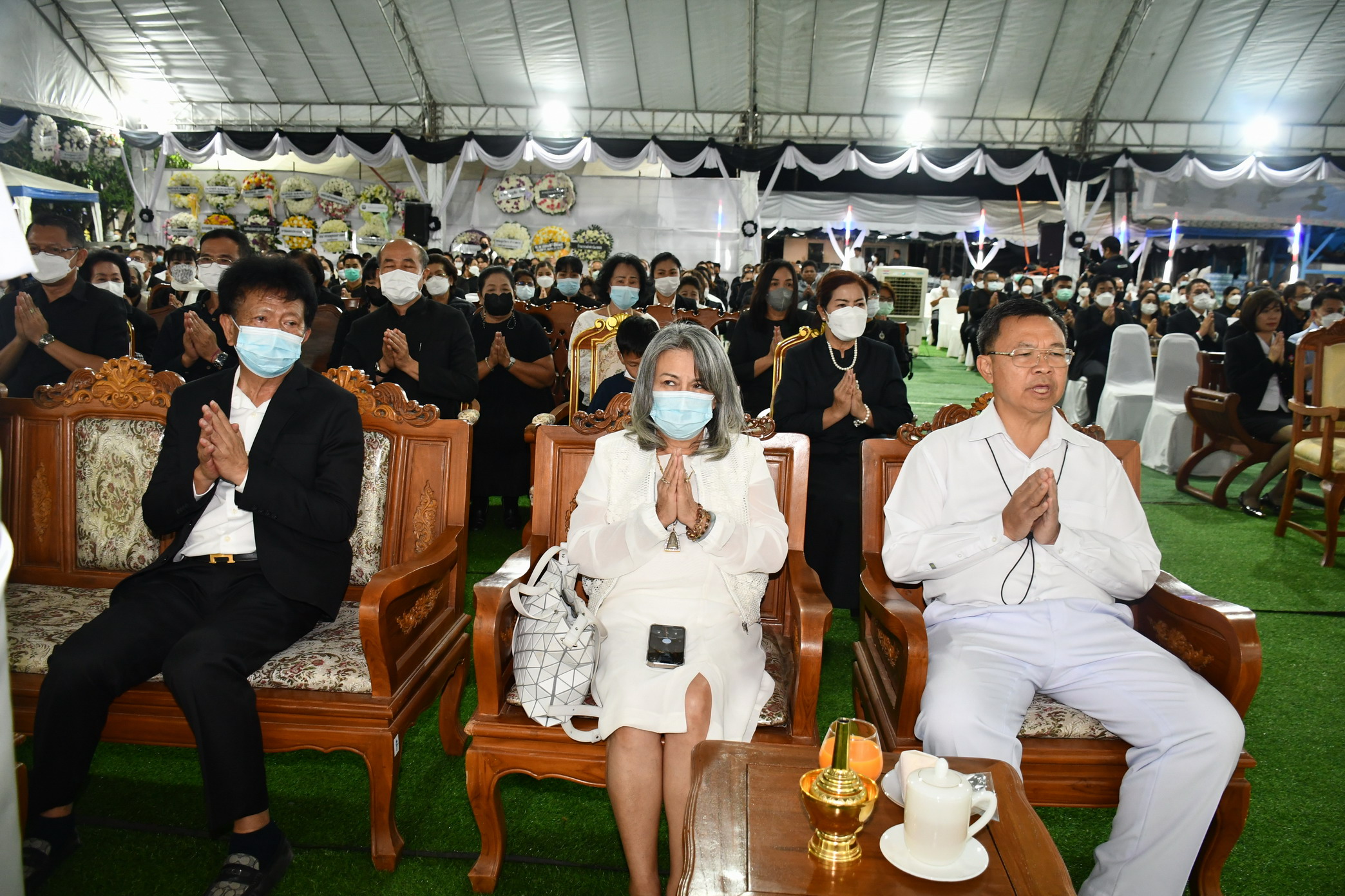 พิธีสวดพระอภิธรรมศพในวันนี้ มีบรรดา ส.ส.พรรคภูมิใจไทยมาร่วมพิธี ได้แก่ นายสิริพงศ์ อังคสกุลเกียรติ ส.ส.ศรีสะเกษ เขต 1 พรรคภูมิใจไทย นายอาสพนธ์ สรรณ์ไตรภพ ส.ส.ศรีสะเกษ เขต 7 พรรคภูมิใจไทย นายปวีณ แซ่จึง ว่าที่ผู้สมัคร ส.ส.ศรีสะเกษ พรรคภูมิใจไทย นางผ่องศรี แซ่จึง ส.ส.ศรีสะเกษ เขต 8 พรรคเพื่อไทย และ มีนายสำรวย เกษกุล ผวจ.ศรีสะเกษ พร้อมด้วย นางมัลลิกา เกษกุล นายกเหล่ากาชาดศรีสะเกษ นายอนุรัตน์ ธรรมประจำจิต และ น.ส.ชนมณัฐ รอดบุญธรรม รอง ผวจ.ศรีสะเกษ นพ.ทนง วีระแสงพงษ์ นพ.สสจ.ศรีสะเกษ ว่าที่ ร.ต.ทวีศักดิ์ นามศรี อดีต ผอ.สพป.ศรีสะเกษ เขต 1 นายสุเทพ ศรบุญทอง ผอ.สพป.ศรีสะเกษ เขต 1 นพ.นพพล บัวสี รอง ผอ.รพ.ศรีสะเกษ ข้าราชการ พ่อค้า ประชาชน มาร่วมเป็นเจ้าภาพ จำนวน 58 คณะด้วยกัน