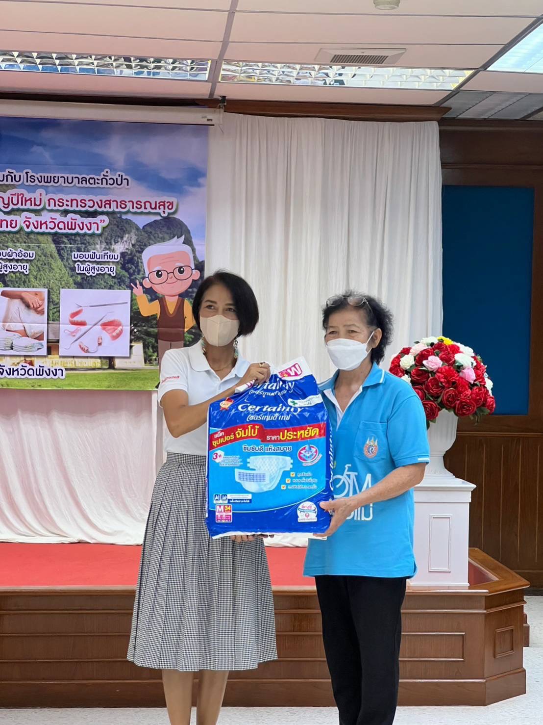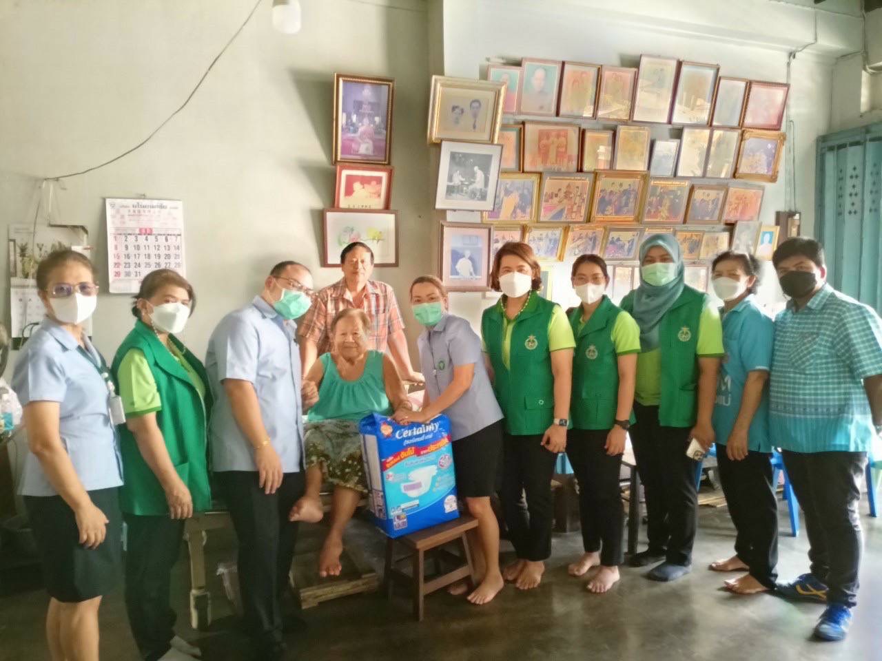 3. มอบผ้าอ้อมและแผ่นรองซับในผู้สูงอายุ ADL 0-6 และผู้ที่กลั้นปัสสาวะอุจจาระไม่ได้ จำนวน 10 ราย