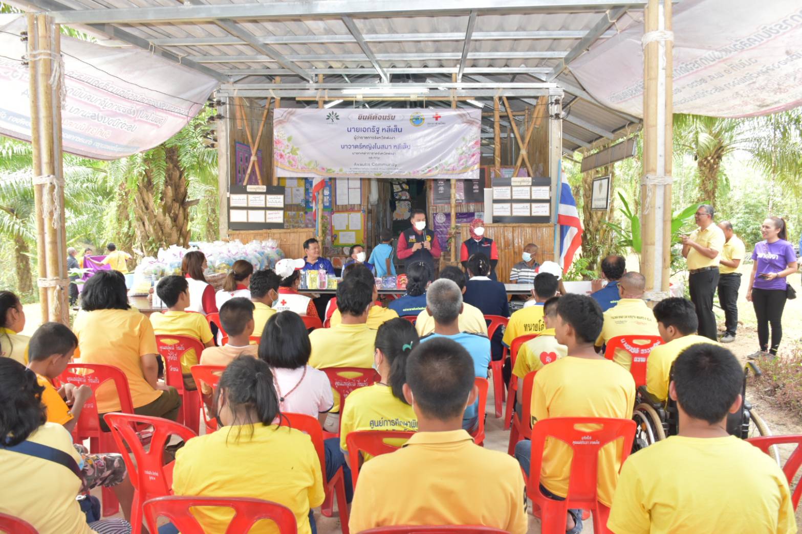 วันที่ 28 มกราคม 66 ที่ศูนย์บริการคนพิการบุคลออทิสติก ตำบลเหล อำเภอกะปง นายเอกรัฐ หลีเส็น ผู้ว่าราชการจังหวัดพังงา เป็นประธานเปิดโครงการเลี้ยงอาหารกลางวัน “แบ่งปันเพื่อน้อง อิ่มท้องสุขใจ” โดยมีนาวาตรีหญิง โนสมา หลีเส็น นายกเหล่ากาชาดจังหวัดพังงา นายธรรมเนียม บำรุง นายอำเภอกะปง นายกัมปนาท มหันต์ ประธานศูนย์บริการคนพิการฯ พัฒนาสังคมและความมั่นคงของมนุษย์จังหวัดพังงา ประชาสัมพันธ์จังหวัดพังงา นายกองค์การบริหารส่วนตำบลเหล คณะกรรมการและสมาชิกเหล่ากาชาดจังหวัดพังงา ผู้นำท้องถิ่นท้องที่ ครู พ่อแม่ผู้ปกครอง และเด็กๆ ร่วมกิจกรรม โดยผู้ว่าราชการจังหวัดพังงา และนายกเหล่ากาชาดจังหวัดพังงา ได้นำชุดเครื่องเขียน ของขวัญชุดของขวัญปีใหม่ ขนม มามอบให้กับเด็กๆ เพื่อสร้างความสุขและรอยยิ้ม อีกทั้งยังมอบถังขยะเปียกลดโลกร้อนและสิ่งของสนับสนุนให้กับศูนย์บริการคนพิการบุคคลออทิสติกด้วย