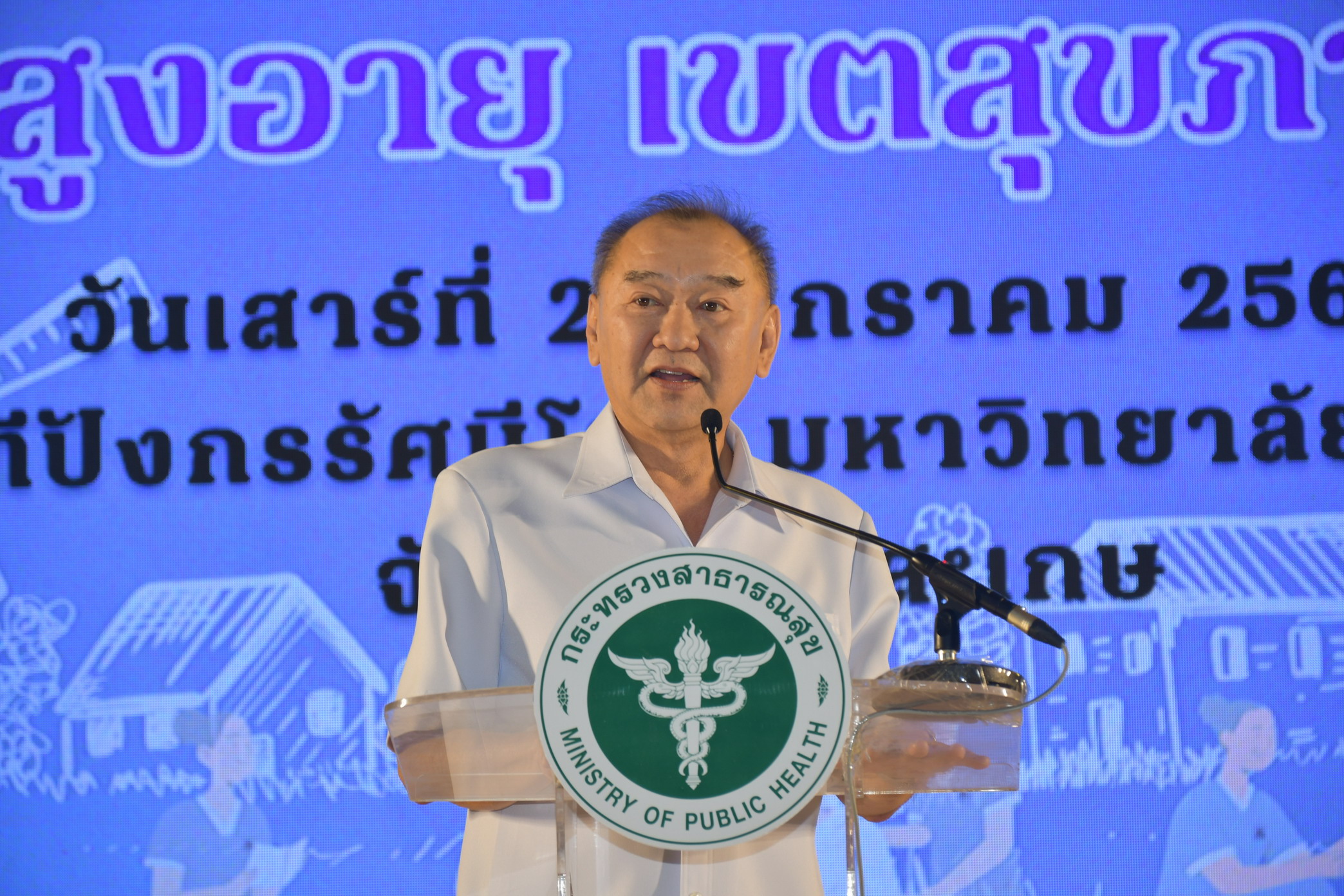 นายแพทย์ประพนธ์ ตั้งศรีเกียรติกุล ผู้ช่วยรัฐมนตรีประจำสำนักนายกรัฐมนตรี กล่าวว่า ตามที่รัฐบาลมีนโยบายมอบของขวัญปีใหม่ 2566 ให้กับพี่น้องประชาชนชาวไทย ทุกปี ซึ่งเป็น เทศกาลพิเศษ ในวันขึ้นปีใหม่ของคนไทย กระทรวงสาธารณสุข ได้มีหน้าที่ในการดูแลทุกข์สุขของพ่อ แม่พี่น้อง ในช่วงเทศกาล สำคัญนี้ เป็นโอกาสดีที่เราได้ตั้งใจผลักดันสิ่งใหม่ๆ และสามารถเข้าถึงได้ ให้ กลุ่มเป้าหมายที่เราเห็นว่าเริ่มจะเพิ่มมากขึ้นทุกปี นั่นคือ สังคมของผู้สูงอายุ หลายๆ ครั้งที่เราได้ยิน ตามสื่อต่างๆ ว่าผู้สูงอายุถูกทอดทิ้ง หรือมีผู้สูงอายุติดบ้าน ติดเตียง เพิ่มมากขึ้น สิ่งเหล่านี้เป็น คุณภาพชีวิตของผู้สูงอายุที่เราไม่สามารถละเลยได้ ปี 2566 เป็นปีที่คาดประมาณว่า ประเทศไทยจะเป็นสังคมผู้สูงอายุอย่างสมบูรณ์ โดยดูจาก สถานการณ์ผู้สูงอายุไทย เมื่อปี2564 ประเทศไทย มีประชากรที่มีอายุตั้งแต่ 60 ปีขึ้นไป จำนวน 12.5 ล้านคน คิดเป็นร้อยละ 18.8 ของประชากรทั้งประเทศ และมีการคาดประมาณประชากร ผู้สูงอายุจะมากขึ้นเรื่อย ๆ ทำให้รัฐบาล ต้องปรับแผนงาน เพื่อรองรับสังคมผู้สูงอายุ ส่งผลให้เกิดการดำเนินการอย่างเป็นรูปธรรม หลายด้าน อาทิการรณรงค์ให้สังคมตระหนักถึงการเป็นสังคมสูงวัย การส่งเสริมทัศนคติที่ดีต่อผู้สูงอายุการพัฒนาศักยภาพบุคลากรที่จะทำงาน ด้านผู้สูงอายุให้เพียงพอ รวมไปถึงการดูแลสุขภาพของผู้สูงอายุให้ได้รับบริการที่ได้มาตรฐาน และสามารถเข้าถึงได้โดยเท่า เทียมกัน และรวดเร็ว