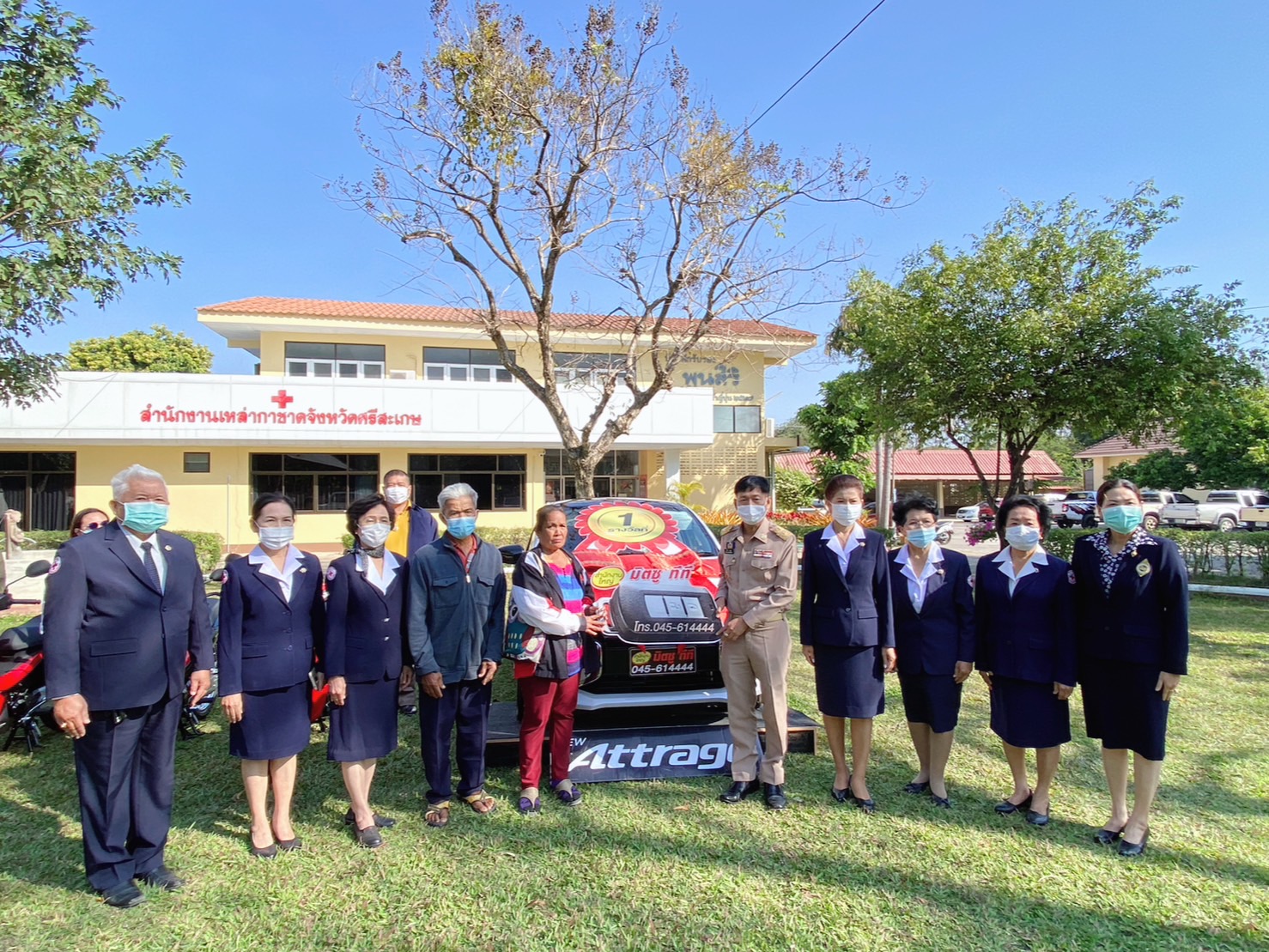 เมื่อวันที่ 30 ม.ค.66 ผู้สื่อข่าวรายงานว่า ที่สำนักงานเหล่ากาชาด จ.ศรีสะเกษ อ.เมือง จ.ศรีสะเกษ นายสำรวย เกษกุล ผวจ.ศรีสะเกษ พร้อมด้วย นางมัลลิกา เกษกุล นายกเหล่ากาชาด จ.ศรีสะเกษ เป็นตัวแทนมอบรางวัลให้กับผู้โชคดีที่ถูกรางวัลจากการขายรางวัลสลากกาชาด ประจำปี 2566 เพื่อหารายได้สนับสนุนกิจการเหล่ากาชาด และกิจกรรมอันเป็นสาธารณกุศลอื่น ๆ ซึ่งมีการจัดงานในระหว่างวันที่ 26 ธ.ค. 65 – 4 ม.ค.66 ที่บริเวณสนามหน้าศาลากลาง จ.ศรีสะเกษ สำหรับผู้โชคดีได้รับรางวัลคือ นายเถื่อน กันตรง ชาวบ้านป่าใต้ หมู่ 8 ต.ทุ่งสว่าง อ.วังหิน จ.ศรีสะเกษ ถูก “สลากกาชาด” รางวัลที่ 1 หมายเลข 72921 ได้รับรถเก๋ง Mitsubishi Attrage จำนวน 1 คัน และนายสุทธิพงษ์ สารบุตร ชาวบ้านระหาร หมู่ที่ 6 ต.สมอ อ.ปรางค์กู่ จ.ศรีสะเกษ ถูก “สลากกาชาด” รางวัลที่ 2 หมายเลข 36440 ได้รับรถยนต์กระบะ Mitsubishi Triton จำนวน 1 คัน รางวัลที่ 3 รถจักรยานยนต์ จำนวน 5 รางวัล ได้แก่ นายสมพร วันเพ็ชร บ้านเลขที่ 30 หมู่ที่ 5 ต.น้ำเกลี้ยง อ.น้ำเกลี้ยง จ.ศรีสะเกษ น.ส.มลทญา โคสารคุณ บ้านเลขที่ 344/1 หมู่ที่ 13 ต.หนองงูเหลือม อ.เบญจลักษ์ จ.ศรีสะเกษ นายยุทธนา พุทธาสมศรี บ้านเลขที่ 44 หมู่ที่ 5 ต.ทุ่งนาโอก อ.เมืองยโสธร จ.ยโสธร นายสมรัตน์ เป็นผล บ้านเลขที่ 132 หมู่ที่ 4 ต.ไพรพัฒนา อ.ภูสิงห์ จ.ศรีสะเกษ นายอดิศักดิ์ โพธิ์ชัย บ้านเลขที่ 27 หมู่ที่ 10 ต.หนองกุง อ.โนนคูณ จ.ศรีสะเกษ