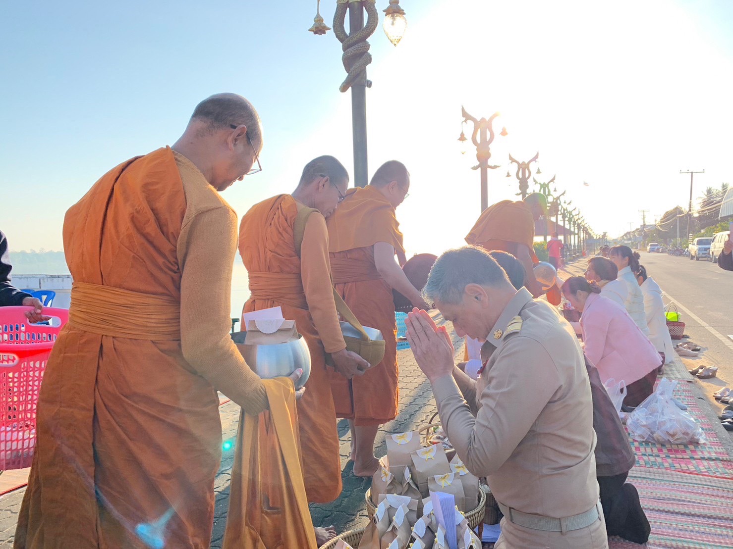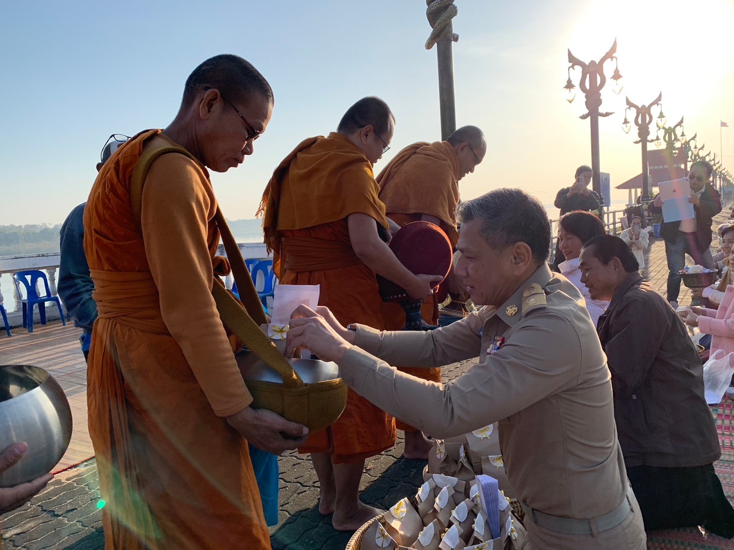 ผู้ว่าฯมุกดาหาร ใส่บาตรร่วมกับชาวบ้านส่งเสริมวิถึชีวิตท้องถิ่นริมฝั่งโขง