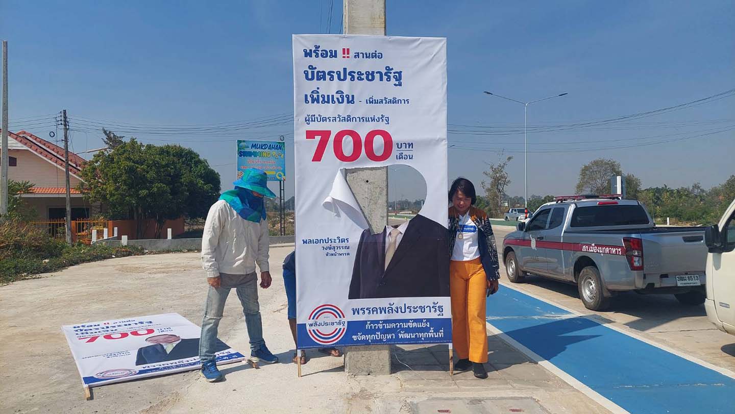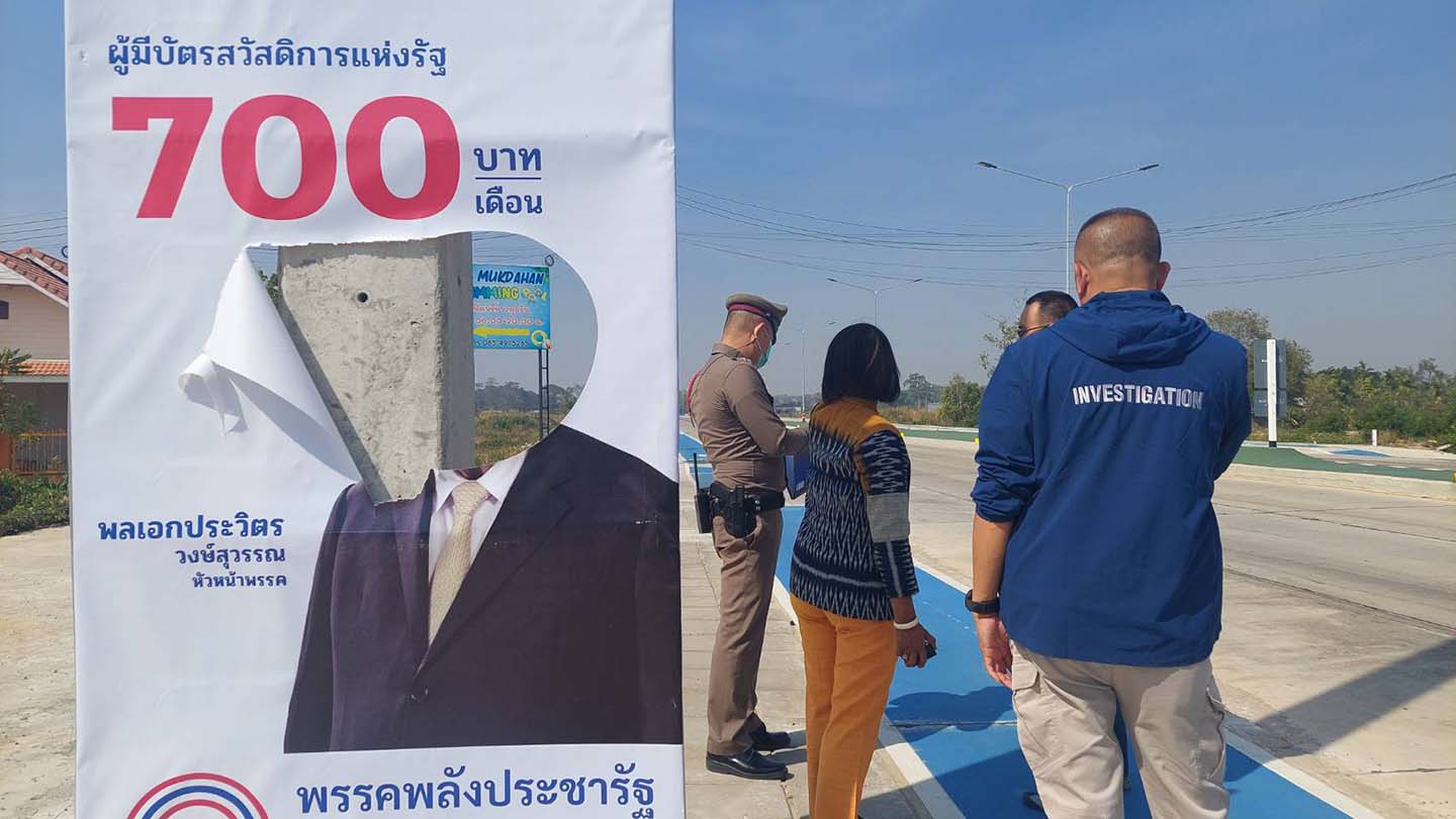 มุกดาหาร การเมืองเดือด ทำลายป้ายพรรคการเมืองก่อนหัวหน้าพรรคลงพื้นที่