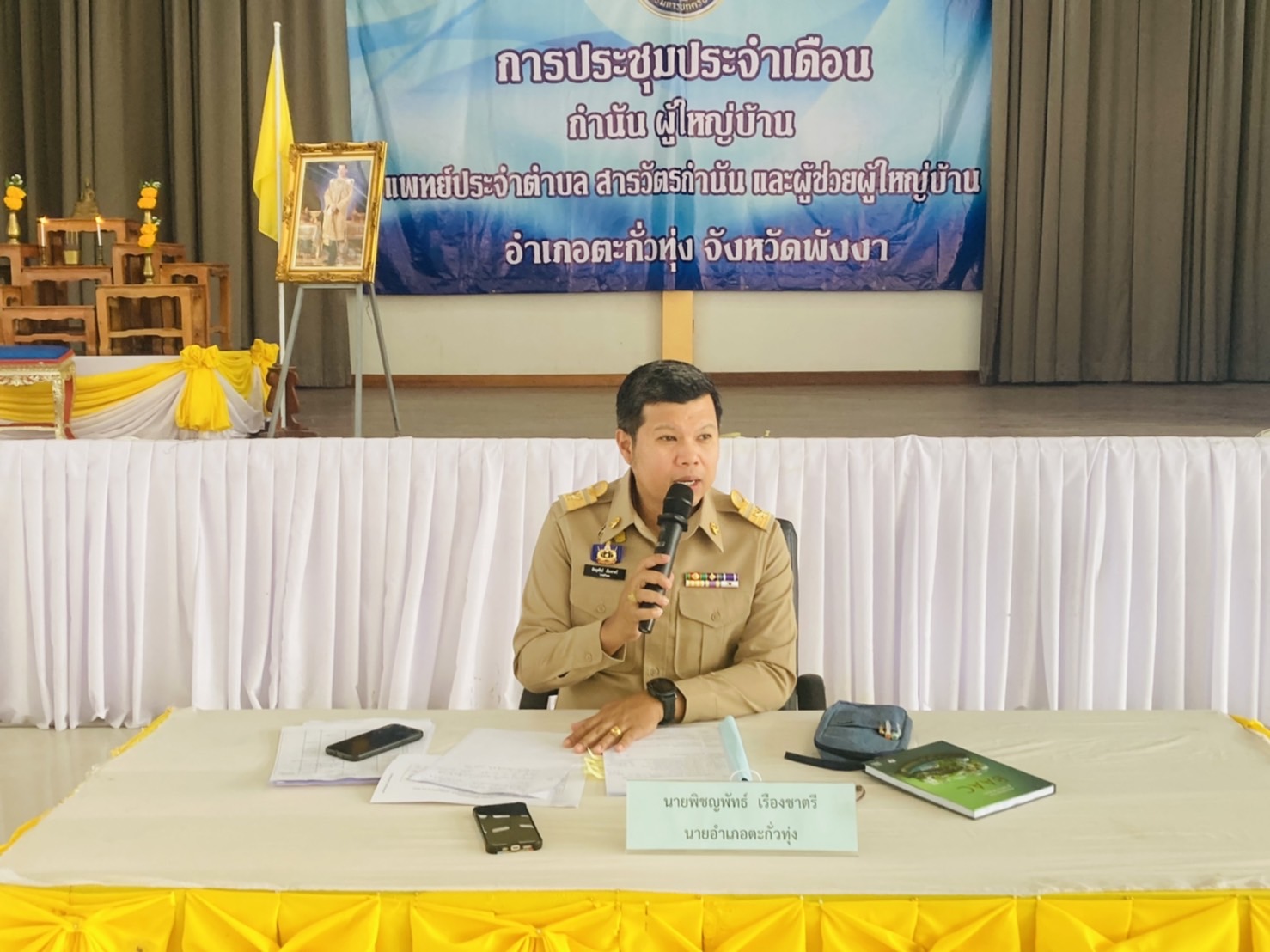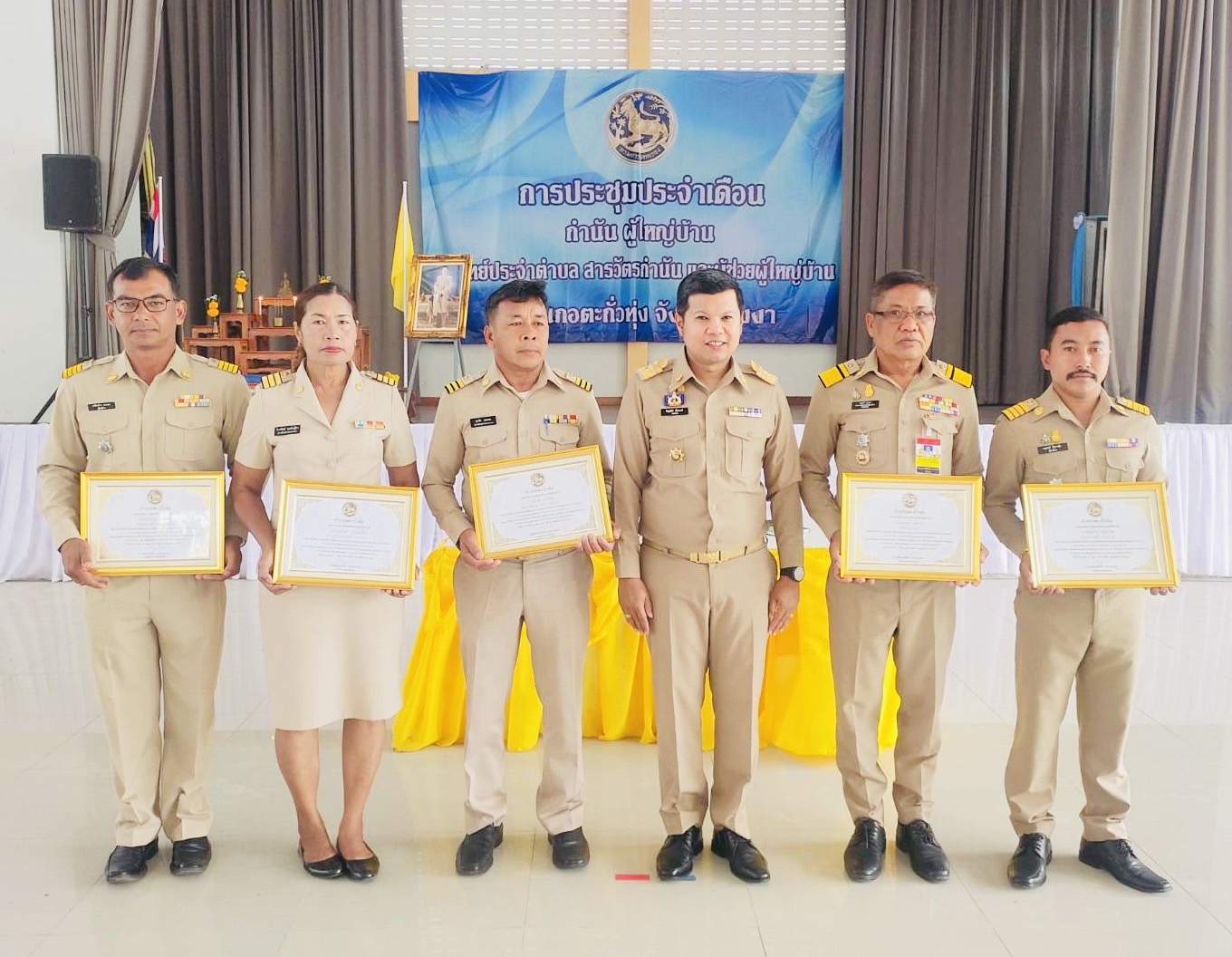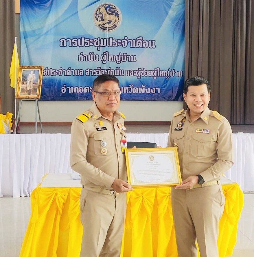 วันที่ 6 กุมภาพันธ์ 2566 ที่หอประชุมที่ว่าการอำเภอตะกั่วทุ่ง จ.พังงา นายพิชญพัทธ์ เรืองชาตรี นายอำเภอตะกั่วทุ่ง เป็นประธานการประชุมกำนัน ผู้ใหญ่บ้าน แพทย์ประจำตำบล สารวัตรกำนัน และผู้ช่วยผู้ใหญ่บ้าน ประจำเดือนกุมภาพันธ์ 2566 โดยก่อนวาระการประชุมได้มีการมอบประกาศเกียรติคุณชื่นชมการปฏิบัติหน้าที่ของนายณรงค์ แสงคง กำนันตำบลท่าอยู่ นายอนุสรณ์ อินทคุ้ม ผู้ใหญ่บ้านหมู่ที่1 ต.ท่าอยู่ และ ผู้ช่วยผู้ใหญ่บ้าน รวม 5 ราย ที่ร่วมกันติดตามจับกุมตัวคนร้ายก่อเหตุบุกเข้าบ้านชิงทรัพย์ในพื้นที่หมู่1 ตำบลท่าอยู่ อ.ตะกั่วทุ่ง จ.พังงา