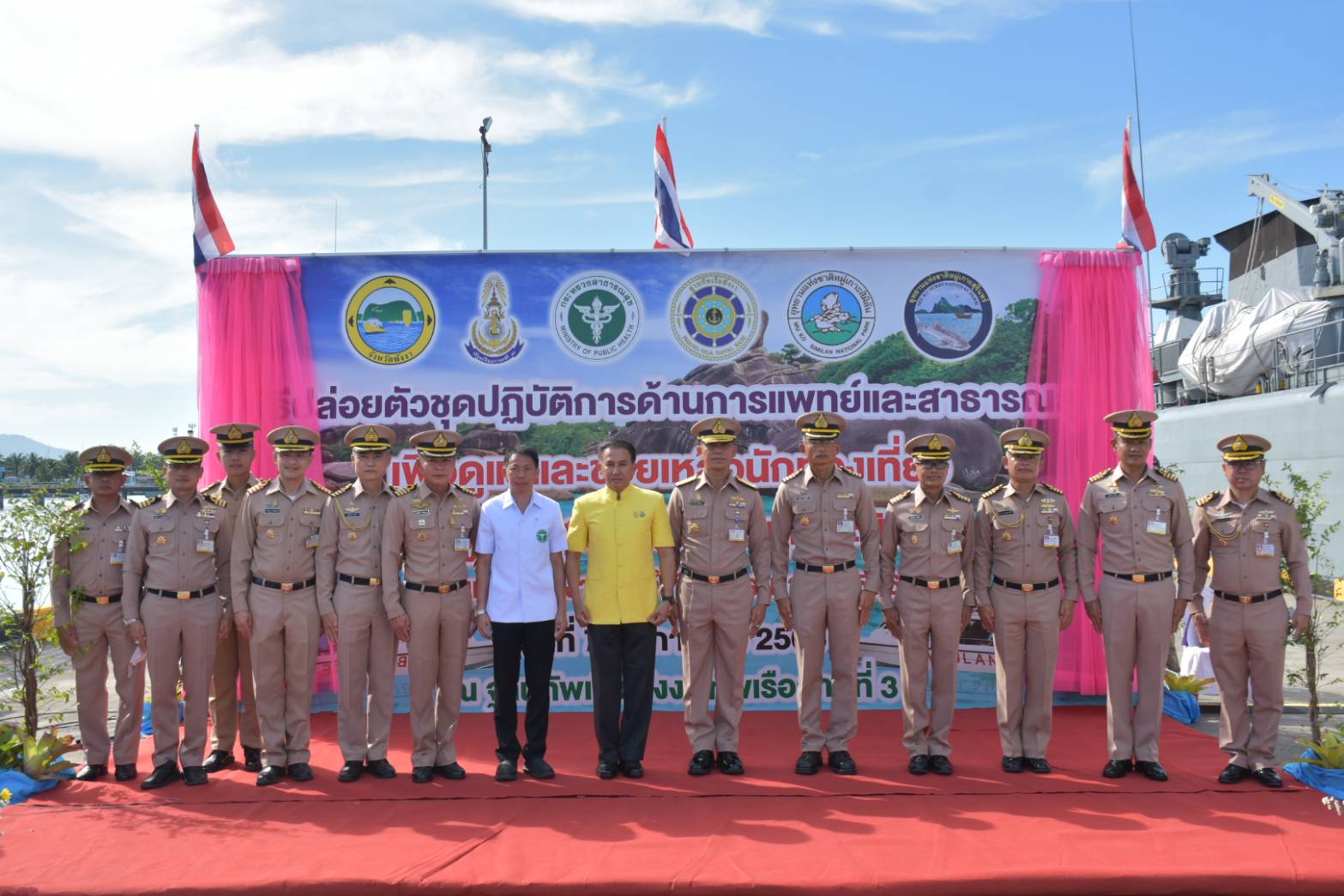 รองนายแพทย์สาธารณสุขจังหวัดพังงา กล่าวว่า จังหวัดพังงา โดยสำนักงานสาธารณสุขจังหวัดพังงา ได้กำหนดแผนปฏิบัติการสาธารณสุขทางทะเลภายใต้วิสัยทัศน์ “การสาธารณสุขทางทะเลประเทศไทยมาตรฐาน สากล ดูแลคุ้มครองสุขภาพประซาชนในพื้นที่ทางทะเลอย่างมีคุณภาพ หนุนเสริมขีดความสามารถของประเทศ สร้างสรรค์มูลค่าเพิ่มทางเศรษฐกิจ” โดยบูรณาการร่วมกับฐานทัพเรือพังงา ทัพเรือภาคที่ 3 อุทยานแห่งชาติหมู่เกาะสุรินทร์ อุทยานแห่งชาติหมู่เกาะสิมิลัน ภาคเอกชน ผู้ประกอบการเรือนำเที่ยว เพื่อดูแลช่วยเหลือประชาชนนักท่องเที่ยวในภาวะวิกฤติฉุกเฉินด้านการสาธารณสุขทางทะเลอย่างมีประสิทธิภาพ โดยมี 4 กิจกรรมหลัก คือ ระบบชายหาดปลอดภัย (Safety Beach) ระบบการเดินทางในทะเลที่ปลอดภัย (Safety Trip) ระบบรับแจ้งเหตุและสั่งการทางทะเล และการจัดตั้งหน่วยบริการทางการแพทย์ฉุกเฉินในพื้นที่อุทยานแห่งชาติทางทะเลหรือเกาะที่สำคัญ เพื่อสร้างความมั่นใจและความน่าเชื่อถือให้แก่นักท่องเที่ยวและผู้ปฏิบัติบนพื้นที่เกาะทั้งสองแห่งให้มากขึ้น