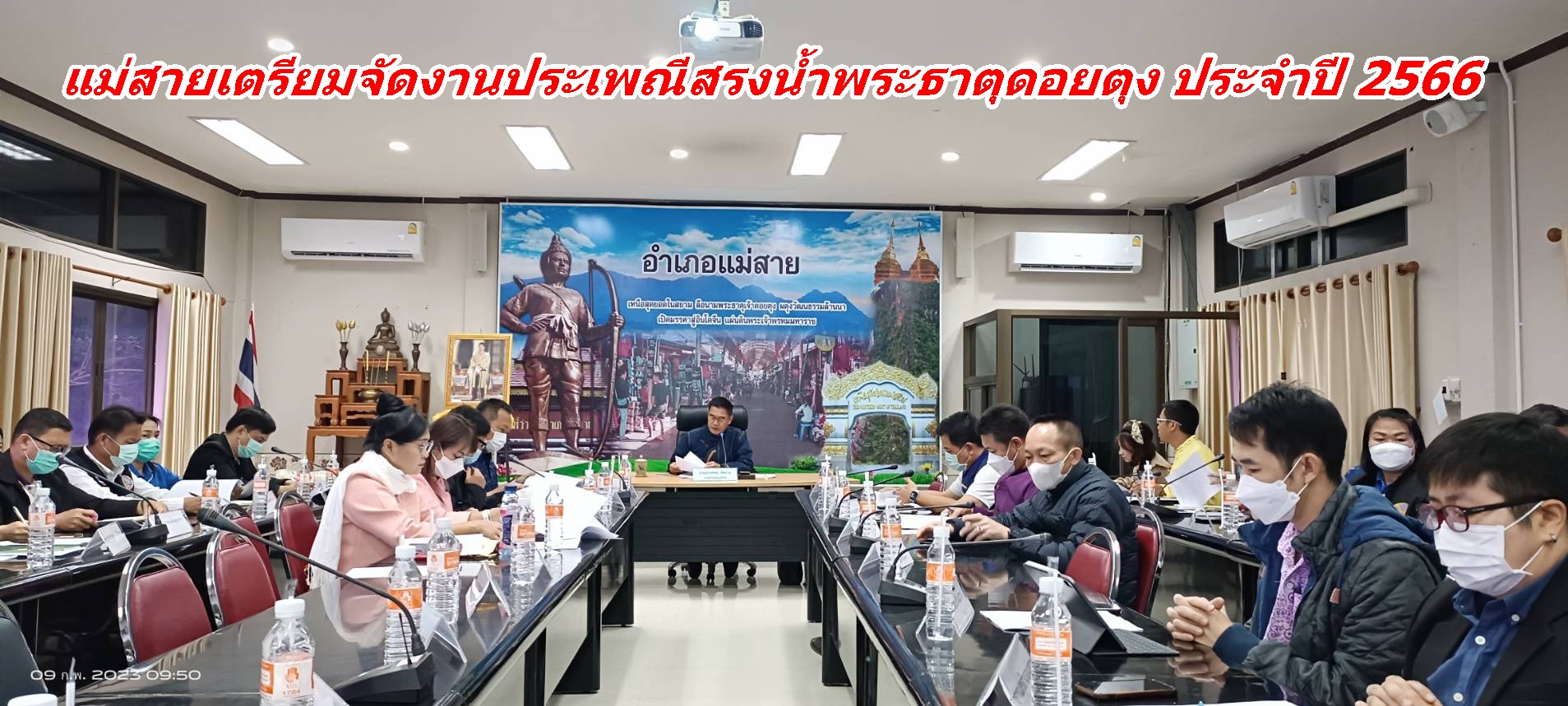 เมื่อวันที่ 9 ก.พ.66 เวลา 09.30 น. นายณรงค์พล คิดอ่าน นายอำเภอแม่สาย เป็นประธานในวาระการประชุมเตรียมการจัดงานประเพณีมนัสการสรงน้ำพระธาตุดอยตุง ประจำปี 2566 ในวันที่ 5-6 มี.ค.66 พร้อมด้วยหัวหน้าหน่วยงานข้าราชการ องค์กรปกครองส่วนท้องถิ่น อ.แม่สาย และวัฒนธรรมอำเภอแม่สาย เข้าร่วมประชุมหารือ ในงานจาริกแสวงบุญ เตียวขึ้นดอย ตวยฮอยครูบา ไหว้สาพระตุดอยตุง พีบวงสรวงพระธาตุดอยตุง พิธีสืบชะตาหลวงแบบล้านนา พีแห่ขบวนเครื่องสักการ สรงน้ำพระราชทานอัญเชิญผ้าไตรพระราชทาน และห่มผ้าพระธาตุพระราชทาน ซึ่งได้ถือปฏิบัติสืบทอดกันมาเป็นเวลายาวนานของจังหวัดเชียงราย..