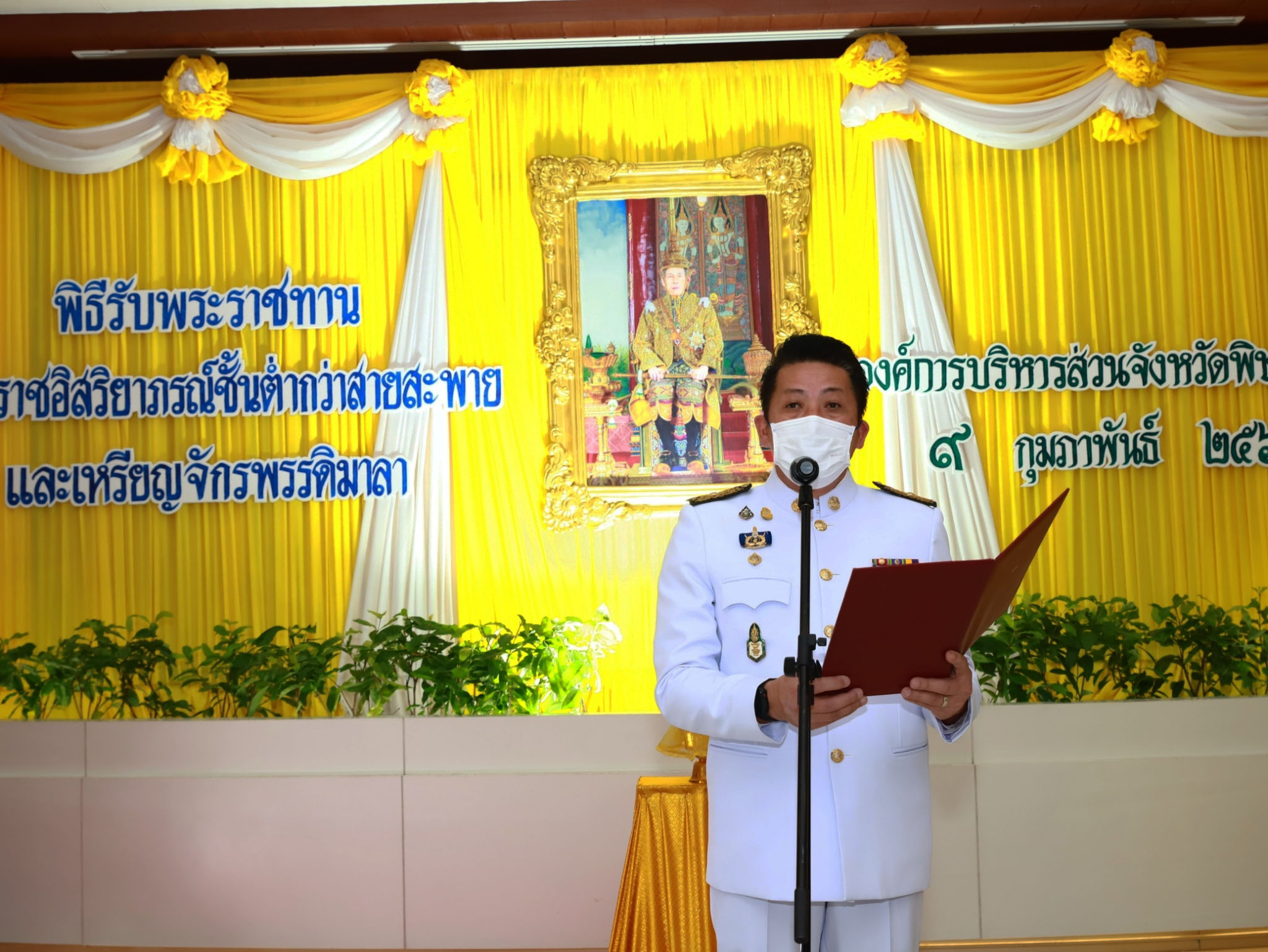 พิษณุโลกอบจ.พิษณุโลก จัดพิธีรับพระราชทานเครื่องราชอิสริยาภรณ์ชั้นต่ำกว่าสายสะพายและเหรียญจักรพรรดิมาลา ประจำปี 2565