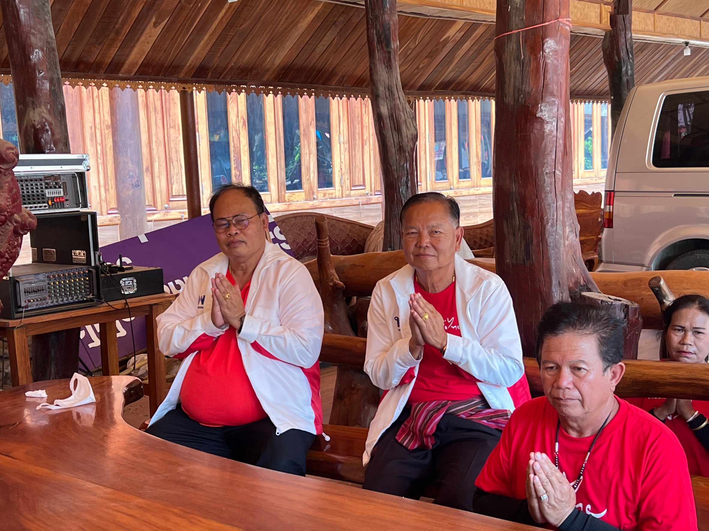 ศรีสะเกษ อมรเทพ สมหมาย พรรคเพื่อไทยกราบไหว้ขอพรหลวงพ่อพุฒศิษย์หลวงปู่สรวง เร่งเดินเคาะประตูบ้านหาเสียงขณะที่มวลชนคนเสื้อแดงหนุนอย่างเต็มที่