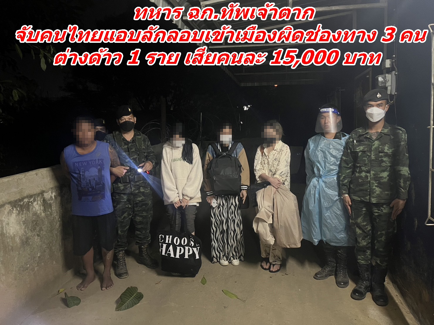 ทหาร ฉก.ทัพเจ้าตาก จับคนไทยแอบลักลอบเข้าเมืองผิดช่องทาง 3 คน ต่างด้าว 1 ราย เสียคนละ 15,000 บาท