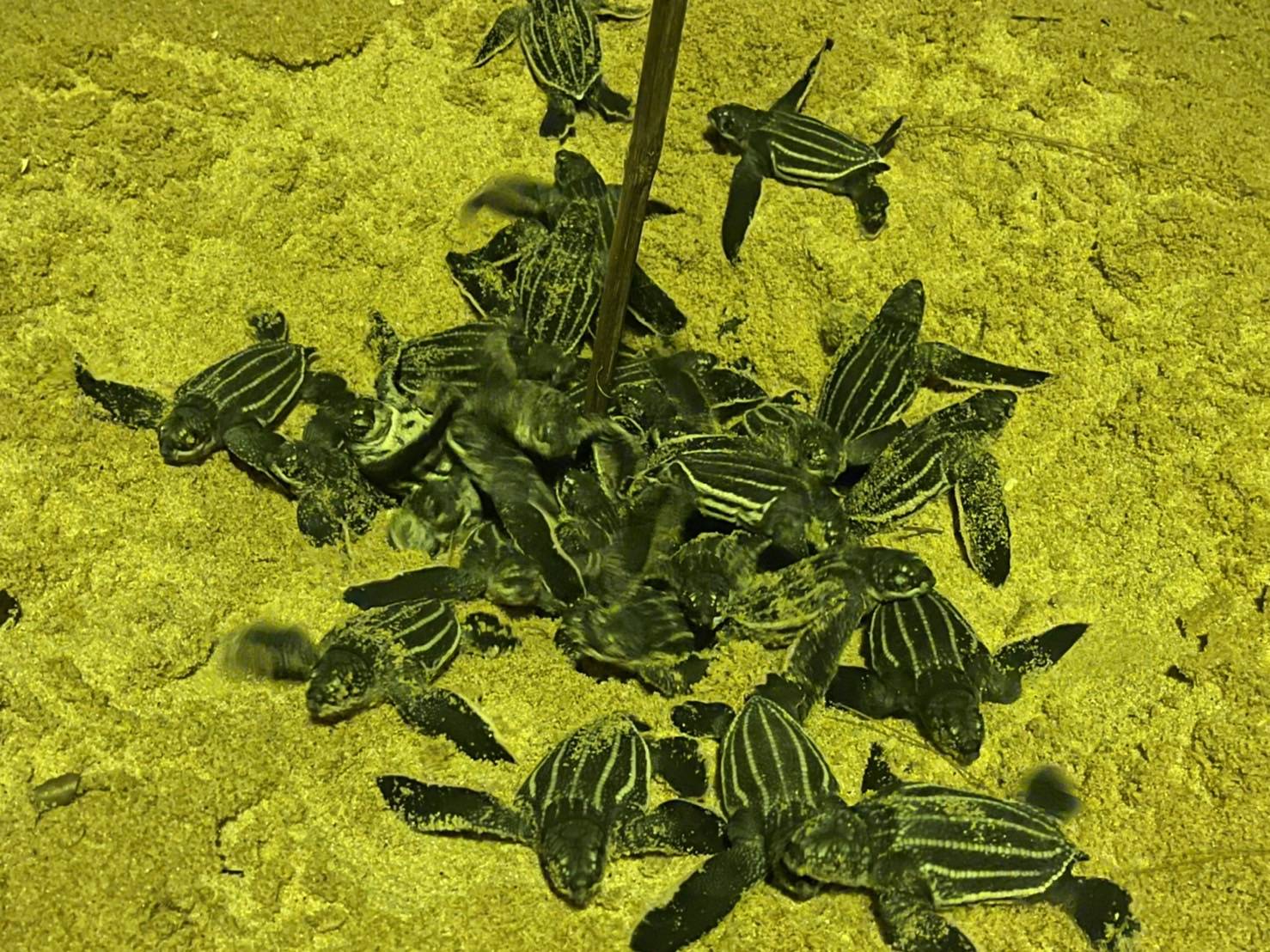 พังงา/ลืมตาดูโลกแล้ว!! ลูกเต่ามะเฟืองรังที่ 4 ชายหาดบางขวัญ ฟักออกจากไข่และกลับสู่ทะเล