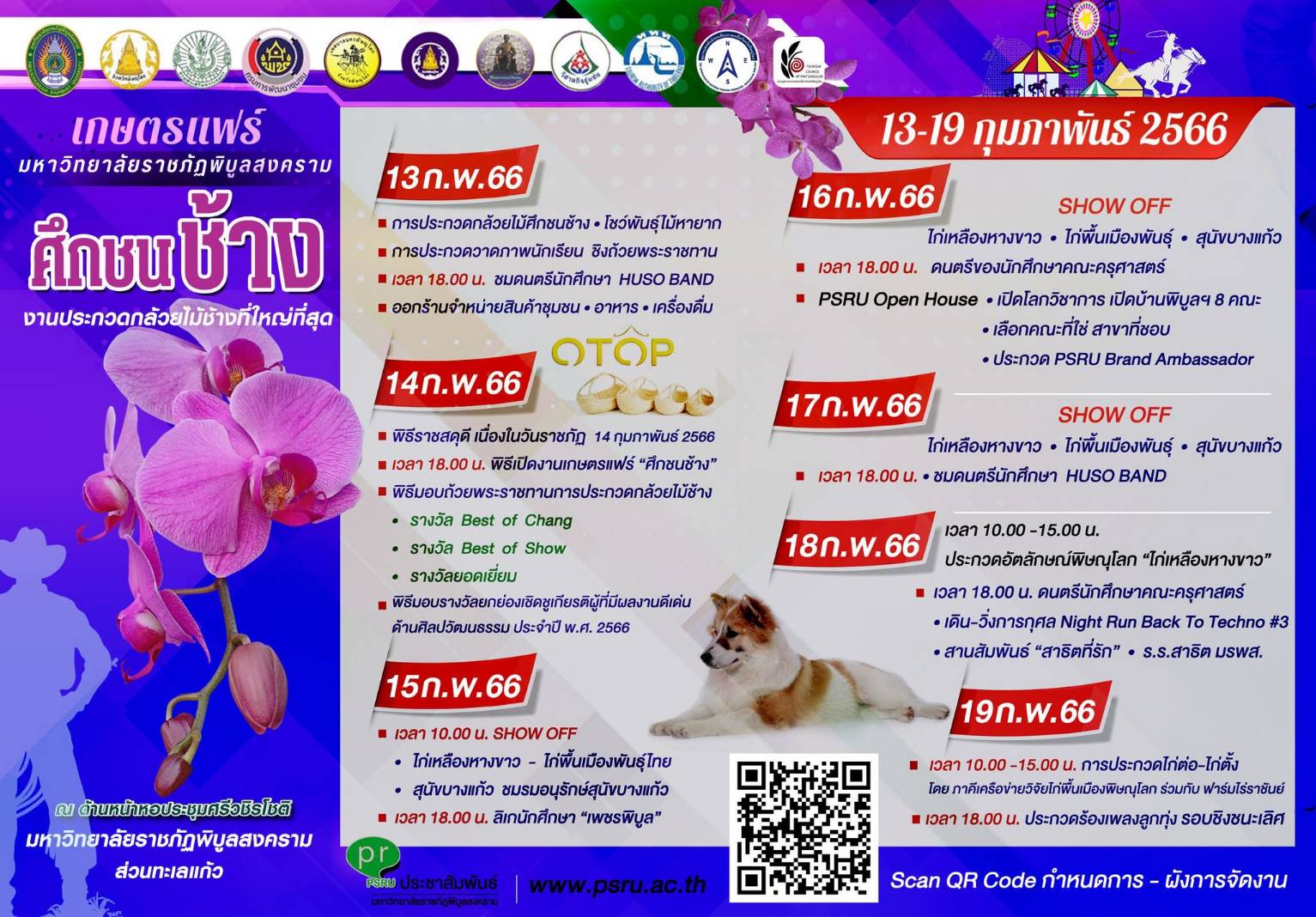 เชิญเที่ยวงาน เกษตรแฟร์ “ศึกช้างชนช้าง” ระหว่างวันที่ 13-19 กุมภาพันธ์ 2566 ที่มหาวิทยาลัยราชภัฏพิบูลสงคราม ส่วนทะเลแก้ว มีกิจกรรมมากมาย