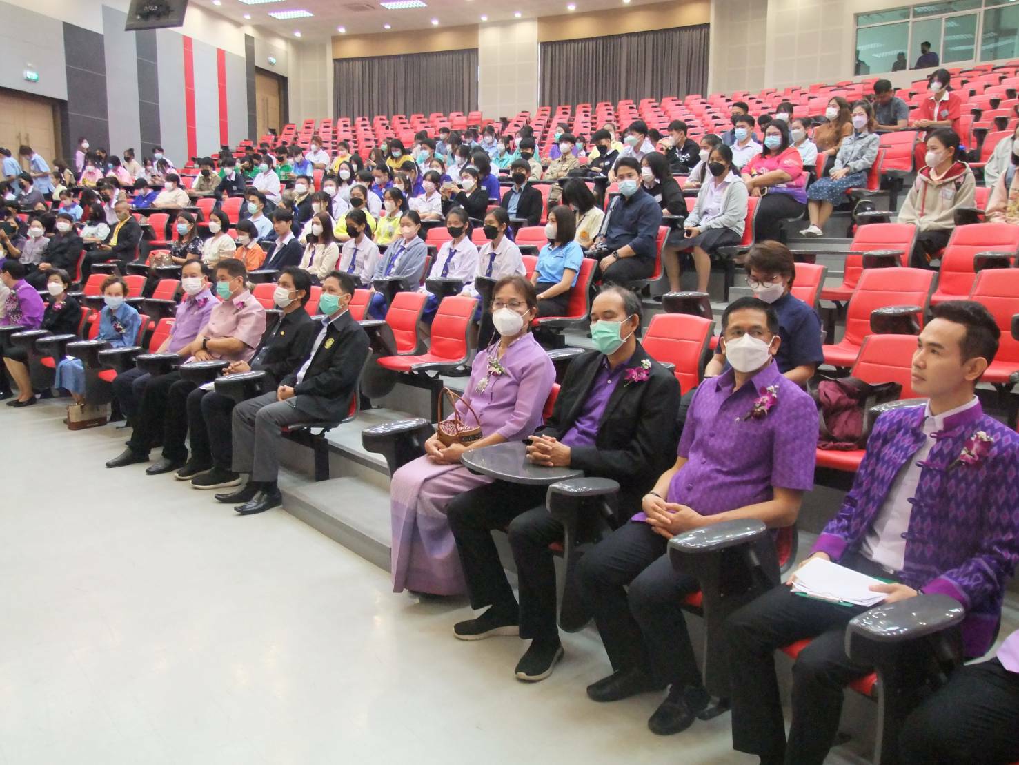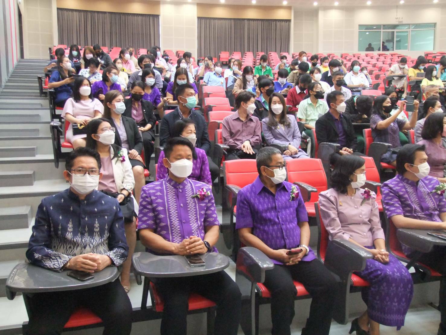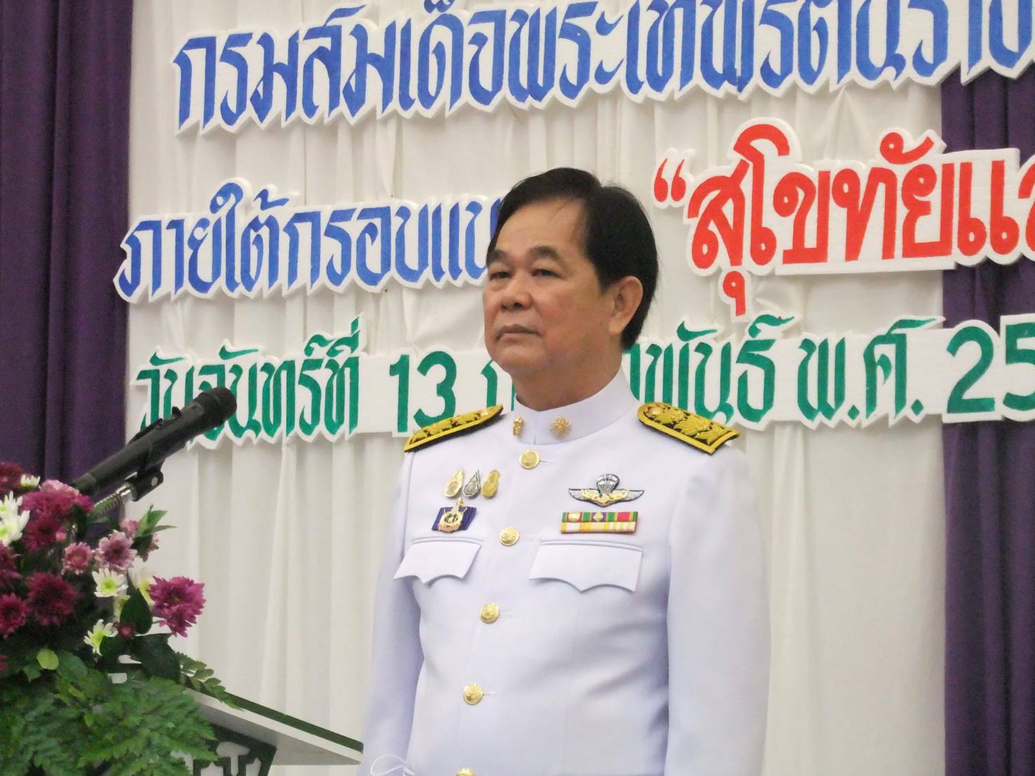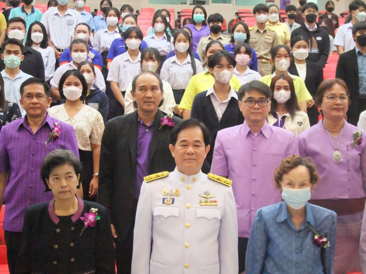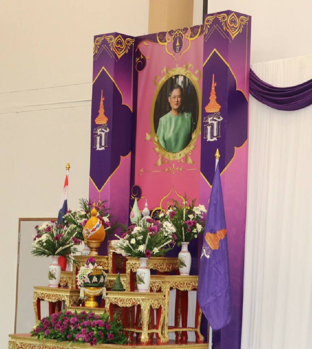 อธิการบดี มหาวิทยาลัยราชภัฏพิบูลสงคราม กล่าวสมนึกในพระมหากรุณาธิคุณต่อพระบรมฉายาลักษณ์ สมเด็จพระขนิษฐาธิราชเจ้า กรมสมเด็จพระเทพรัตนราชสุดาฯ สยามบรมราชกุมารี เสร็จแล้วเปิดเพลงสรรเสริญพระบารมี