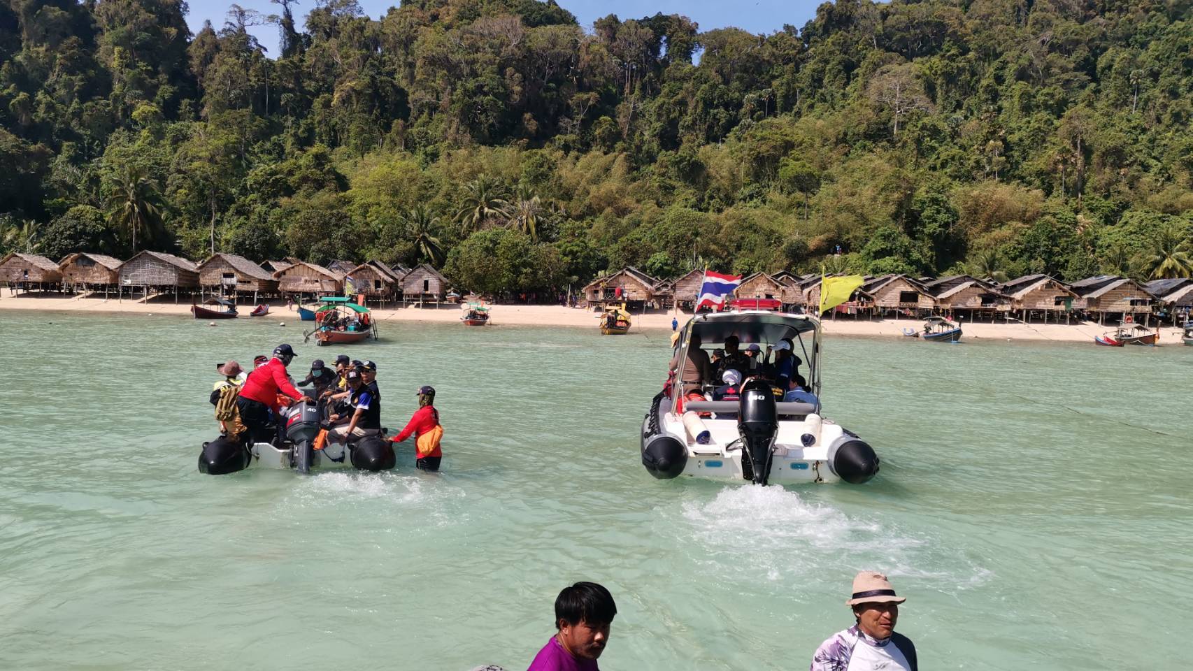 ซึ่งคณะผู้ว่าราชการจังหวัดพังงาก็ได้ติดตามมาตรการดูแลความปลอดภัยและการรองรับนักท่องเที่ยวในแหล่งท่องเที่ยวทางทะเลของอุทยานแห่งชาติหมู่เกาะสุรินทร์ ตรวจเยี่ยมดูความพร้อมของหน่วยรักษาความปลอดภัยทางทะเลหมู่เกาะสุรินทร์ ตรวจเยี่ยมศูนย์เฉพาะกิจดูแลนักท่องเที่ยว ตรวจเยี่ยมศูนย์สาธารณสุขมูลฐานชุมชนแล้ว และเยี่ยมเยียนชาวไทยมอแกนที่อาศัยอยู่บริเวณอ่าวบอนใหญ่ เกาะสุรินทร์ใต้ โดยมีนายอาทิตย์ ขยันกิจ หัวหน้าอุทยานแห่งชาติหมู่เกาะสุรินทร์ ได้นำเยี่ยมชม พร้อมกันนี้เหล่ากาชาดจังหวัดพังงาได้มอบถุงยังชีพให้กับผู้สูงอายุ มอบขนม มอบชุดฝึกการเรียนการสอน ให้กับเด็ก ๆด้วย