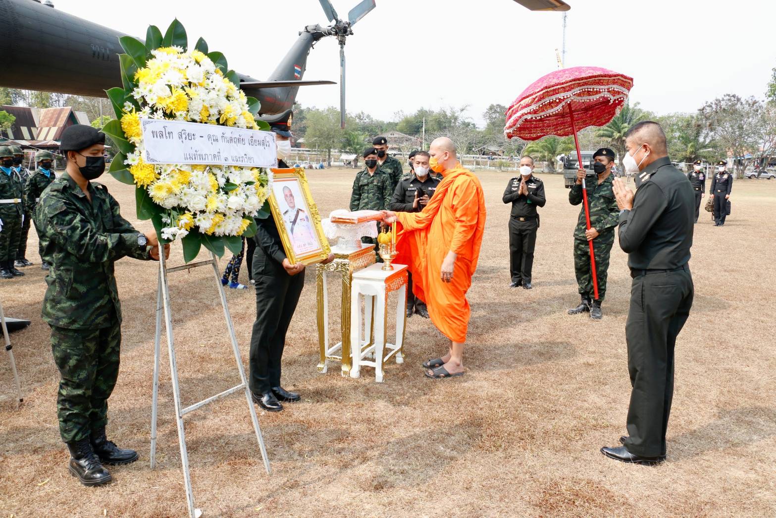 วันที่ 15 กุมภาพันธ์ 2566 ที่ สนามเฮลิคอปเตอร์(ชั่วคราว) โรงเรียนบ้านหนองกะท้าว อำเภอนครไทย จังหวัดพิษณุโลก พลตรี ประสาน แสงศิริรักษ์ รองแม่ทัพภาคที่ 3 เป็นผู้แทนแม่ทัพภาคที่ 3