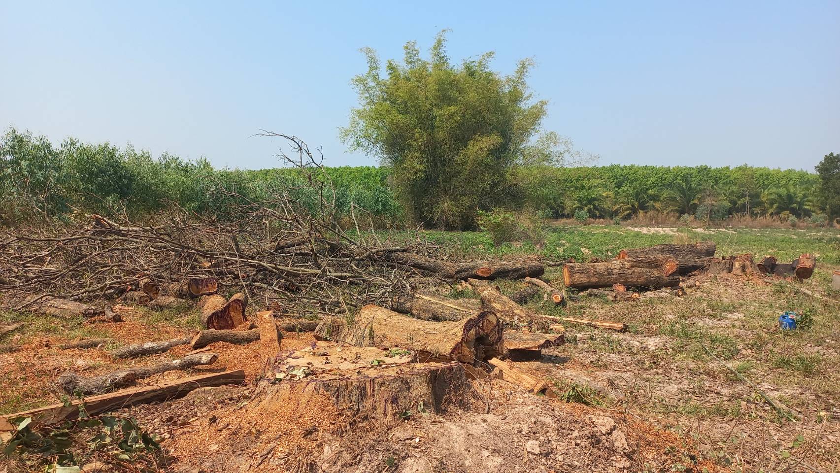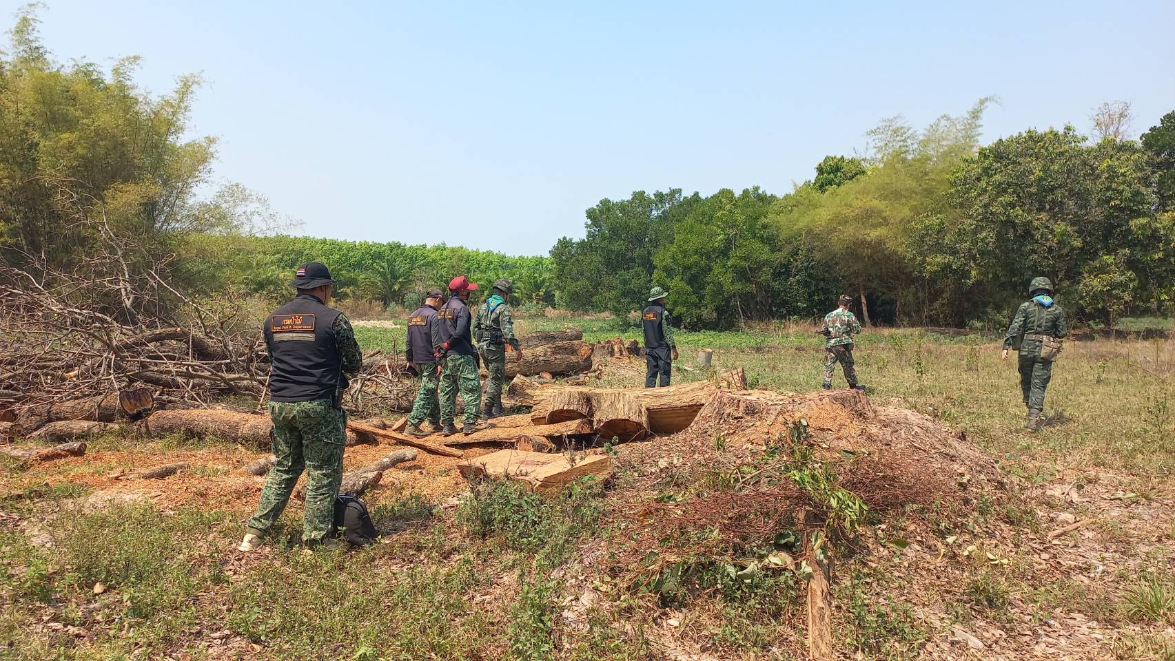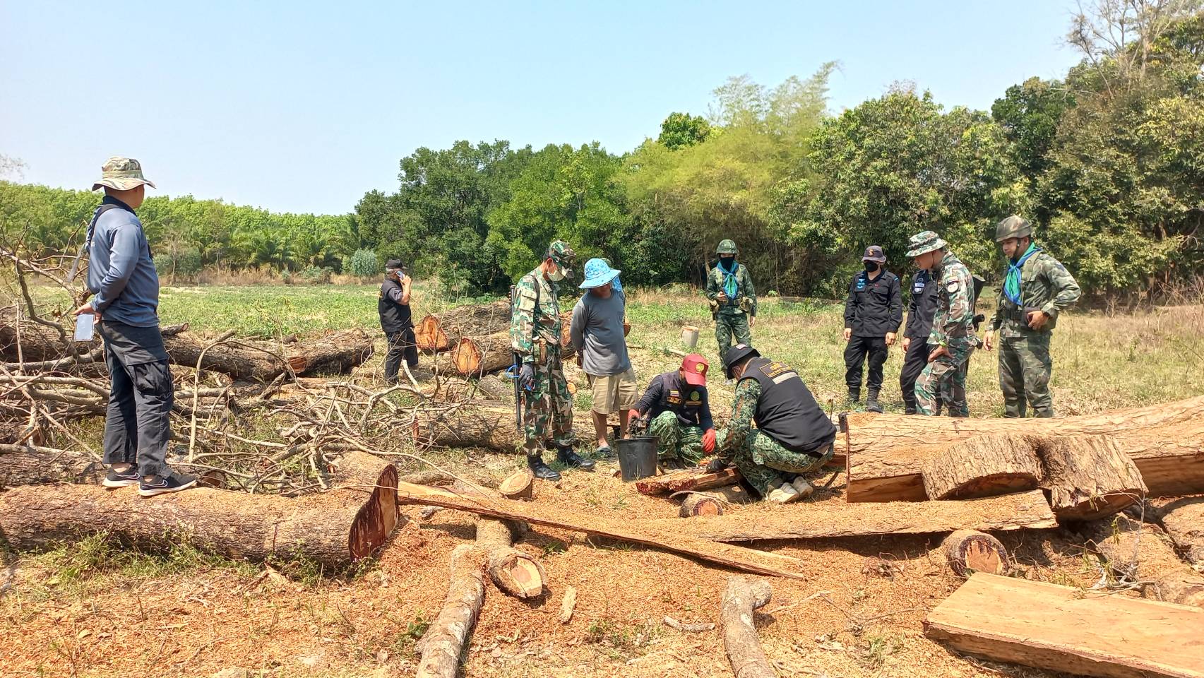 เมื่อวันที่ 18 ก.พ. 2566 ผู้สื่อข่าวรายงานว่า ที่บริเวณกลางทุ่งนาด้านทิศเหนือบ้านเสาธงชัย ม.1 ต.เสาธงชัย อ.กันทรลักษ์ จ.ศรีสะเกษ เจ้าหน้าที่อุทยานแห่งชาติเขาพระวิหาร พร้อมด้วยเจ้าหน้าที่หน่วยป้องกันรักษาป่าศรีสะเกษที่ 6 เจ้าหน้าที่หน่วยเฉพาะกิจกรมทหารพรานที่23 เจ้าหน้าที่ทหารหน่วยเฉพาะกิจที่1 และเจ้าหน้าที่ฝ่ายปกครองอำเภอกันทรลักษ์ ได้ร่วมกันเข้าไปทำการตรวจสอบที่บริเวณดังกล่าว หลังจากที่ได้รับแจ้งจากพลเมืองดี ว่ามีการลักลอบตัดต้นประดู่ขนาดใหญ่ใกล้หมู่บ้านเสาธงชัย ซึ่งอยู่ติดกับแนวชายแดนไทย – กัมพูชาด้านปราสาทพระวิหาร เมื่อเจ้าหน้าที่เดินทางไปใกล้ถึงจุดที่เกิดเหตุ คนร้ายจำนวน 2 คนที่กำลังตัดไม้ได้ไหวตัวทิ้งเลื่อยยนต์และอุปกรณ์ต่าง ๆ เอาไว้และวิ่งหลบหนีเข้าป่า เจ้าหน้าที่ได้จัดกำลังออกไล่ติดตามไปแต่ไม่พบ