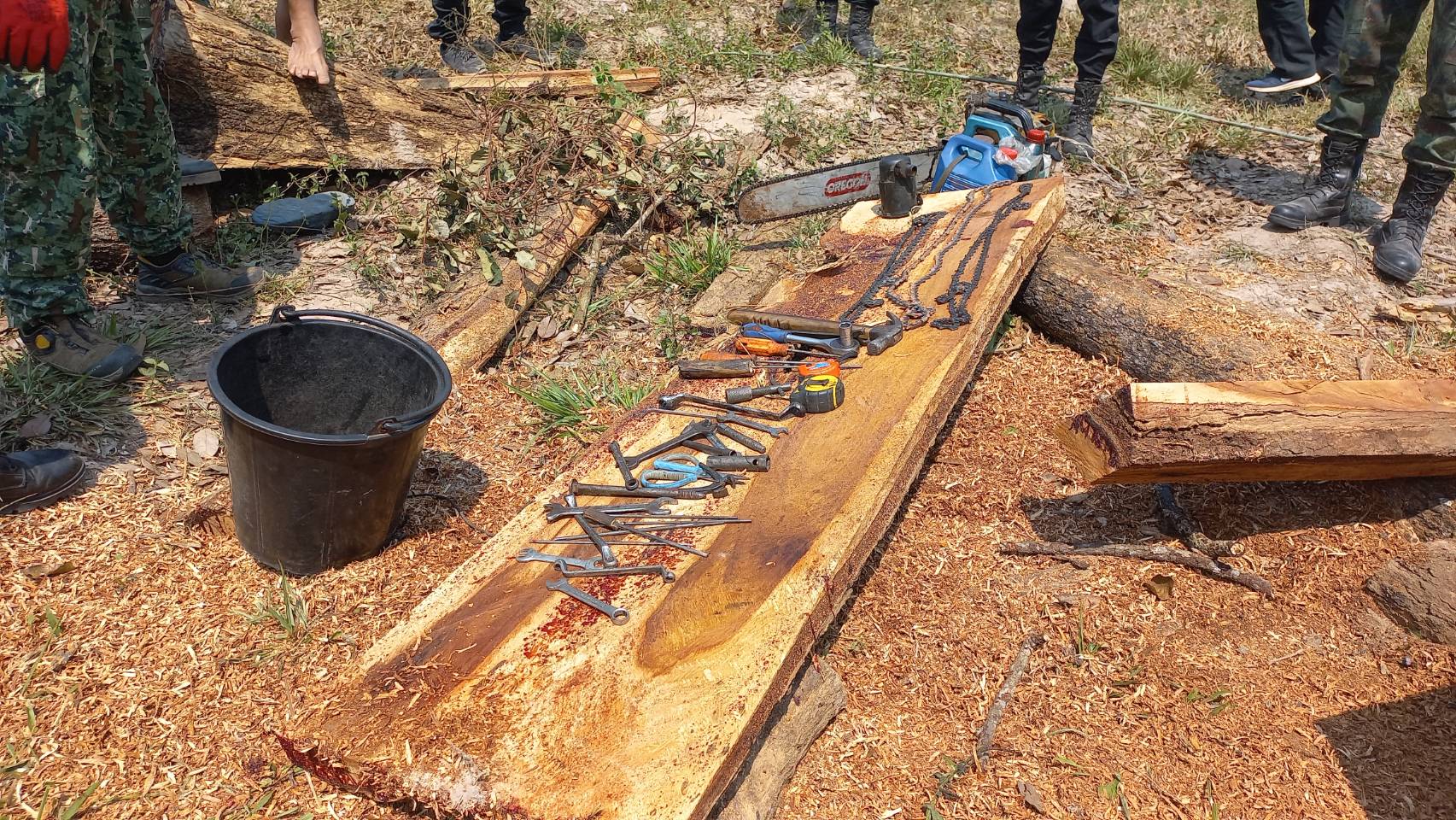 จากการตรวจสอบพื้นที่จุดเกิดเหตุพบไม้ประดู่ขนาดใหญ่ วัดขนาดจากตอไม้ที่หลงเหลืออยู่ ประดู่ต้นนี้มีอายุกว่า 80 ปี ถูกตัดโค่นจำนวน 2 ต้น ใกล้กันพบจอบจำนวน 1 เล่ม กระติกน้ำ 1 ใบ เสื้อยืดแขนยาวสีดำจำนวน 1 ตัว กล่องบรรจุใบเลื่อย 2 กล่อง ห่างกันไม่มากนักพบเลื่อยโซ่ยนต์ จำนวน 1 เครื่อง และถังสีดำ 1 ใบภายในพบเครื่องมือใช้ในการทำไม้จำนวนหนึ่ง และแกลลอนน้ำมัน 2 แกลลอน ซึ่งคาดคนร้ายมองเห็นรถของเจ้าหน้าที่ก่อนเข้าถึงจุดเกิดเหตุ เนื่องจากพื้นที่เป็นที่โล่งสามารถมองเห็นได้ในระยะไกล จึงได้ทิ้งเลื่อยและเครื่องมือก่อนวิ่งหลบหนีเข้าป่าเอาตัวรอด ในจุดเกิดเหตุยังพบไม้ประดู่ที่ยังหลงเหลืออยู่