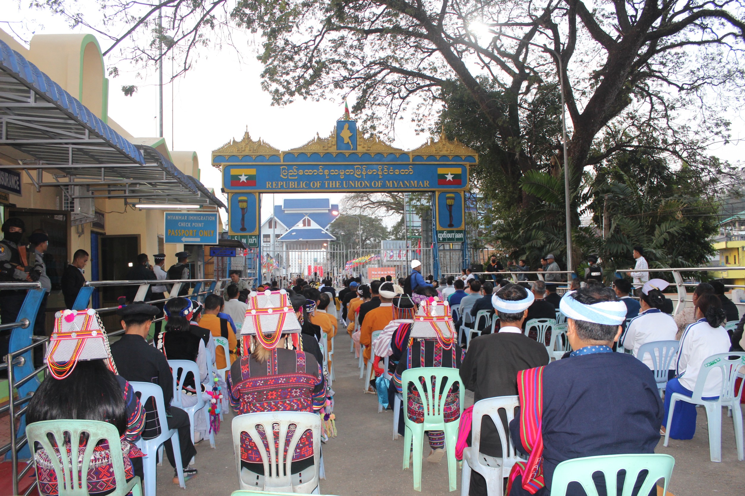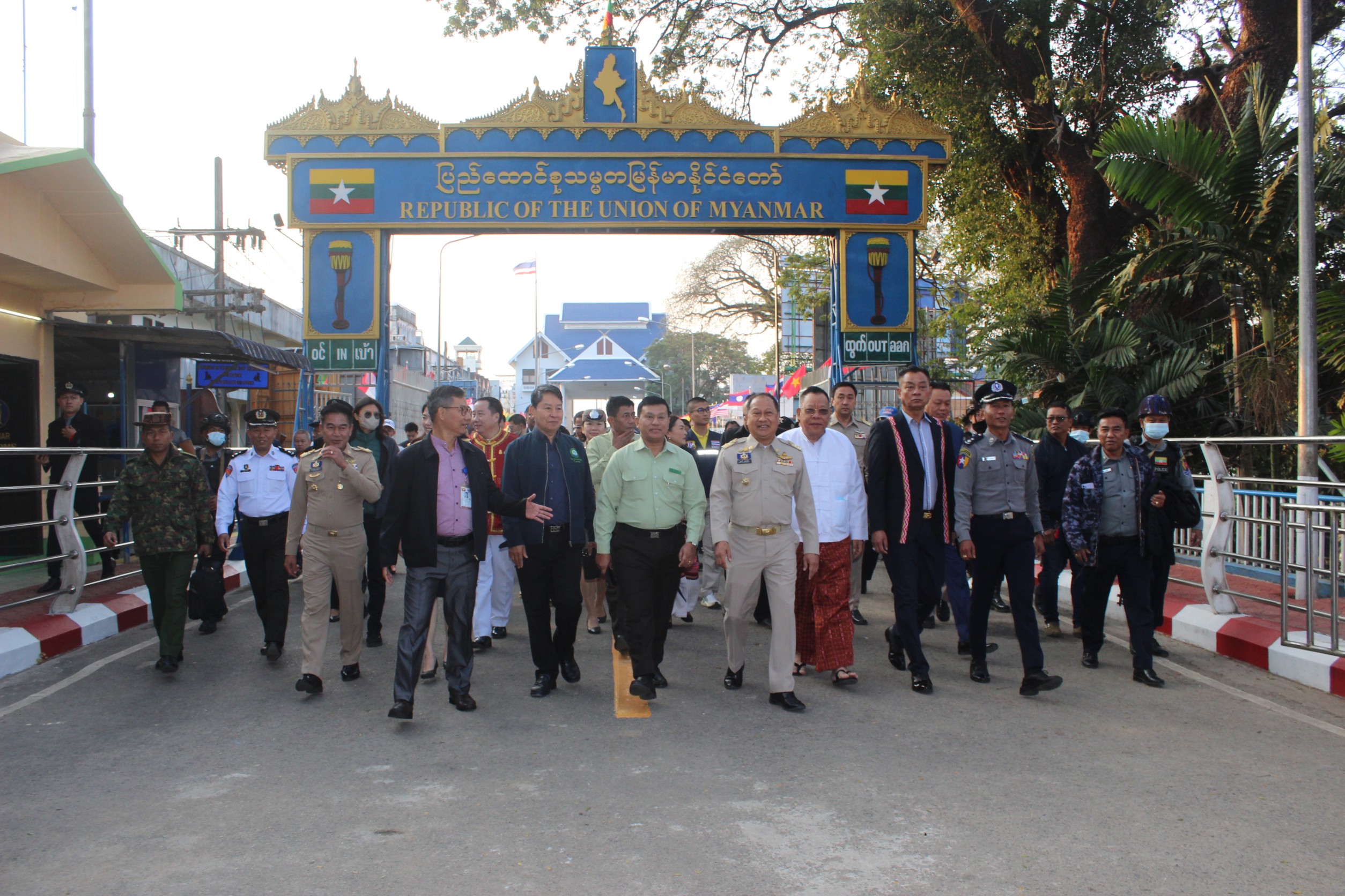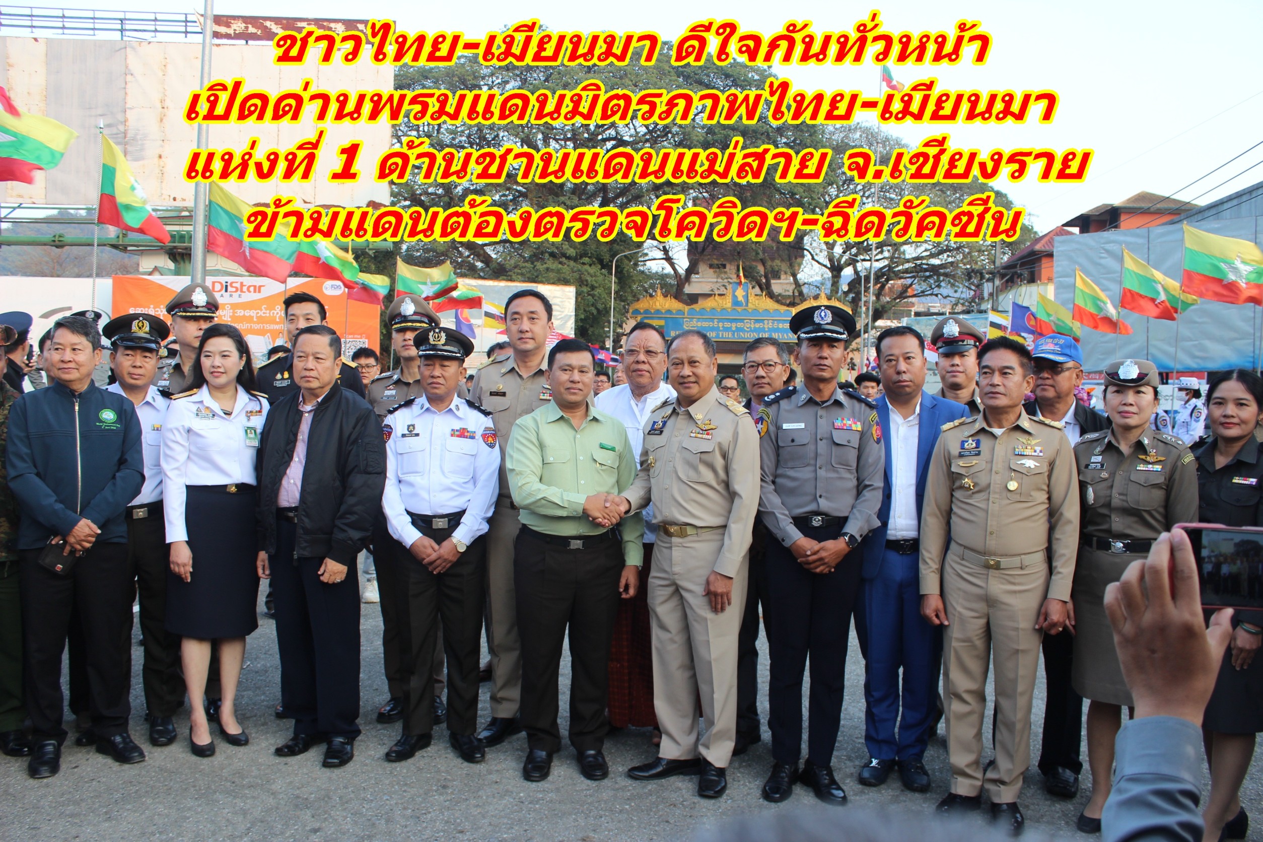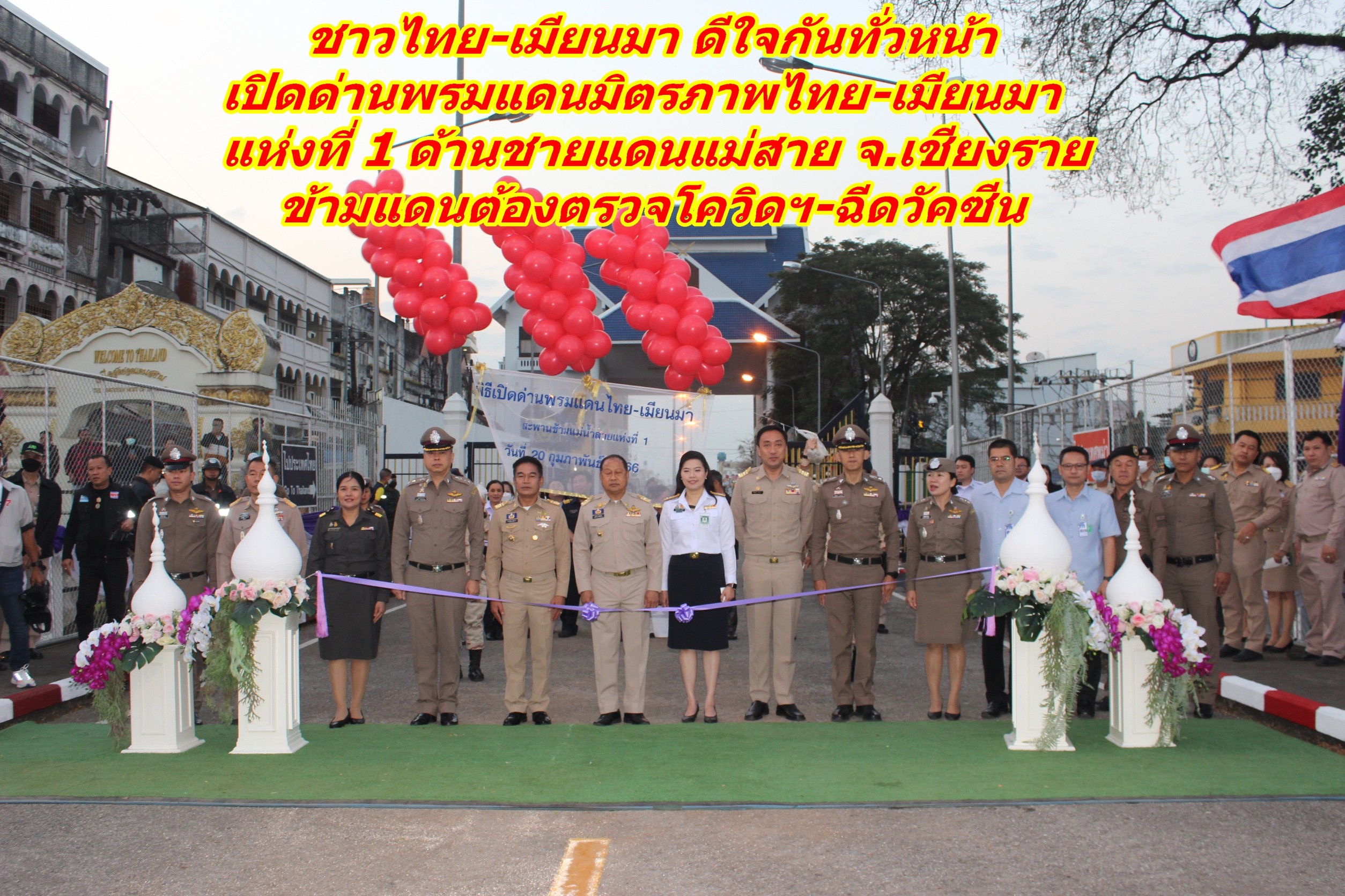 วันนี้ 20 ก.พ.66 นายอู่มิ้นไหน่ ผู้ว่าการ ผู้ว่าราชการท่าขี้เหล็ก นายสมหวัง บุญระยอง รองผู้ว่าราชการจังหวัดเชียงราย ได้ร่วมกันเปิดประธานในพิธีเปิดด่านพรมแดนมิตรภาพไทยเมียนมา แห่งที่ 1 ด้านชายแดนแม่สาย จ.เชียงราย พร้อมด้วย พ.อ.มิน มิน ทุน ผบ.ยุทธศาสตร์ท่าขี้เหล็ก นายณรงค์พล คิดอ่าน นายอำเภอแม่สาย หน่วยงานข้าราชการของไทย-เมียนมา ที่เกี่ยวข้องตามแนวชายแดน อ.แม่สาย ท่าขี้เหล็กประเทศเมียนมา เข้าร่วมพิธีเปิดด่านในครั้งนี้ อย่างเป็นทางการโดยถือเป็นการเปิดครั้งแรกในรอบเกือบ 3 ปี นับตั้งแต่มีการปิดตามมาตรการป้องกันไวรัสโควิด-19 เมื่อวันที่ 23 มี.ค.2561 เป็นต้นมา