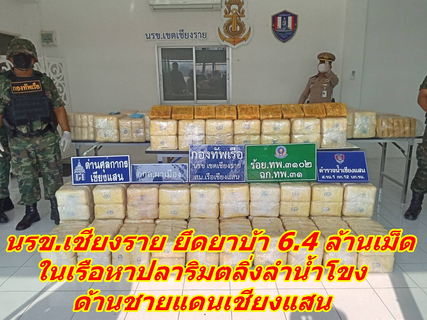 นรข.เชียงราย ยึดยาบ้า 6.4 ล้านเม็ด ในเรือหาปลาริมตลิ่งลำน้ำโขง ด้านชายแดนเชียงแสน