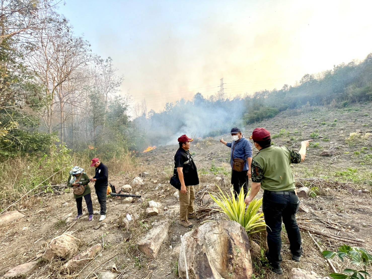 พิษณุโลก นายอำเภอลงพื้นที่ติดตามสถานการณ์ไฟป่าตำบลวังนกแอ่น