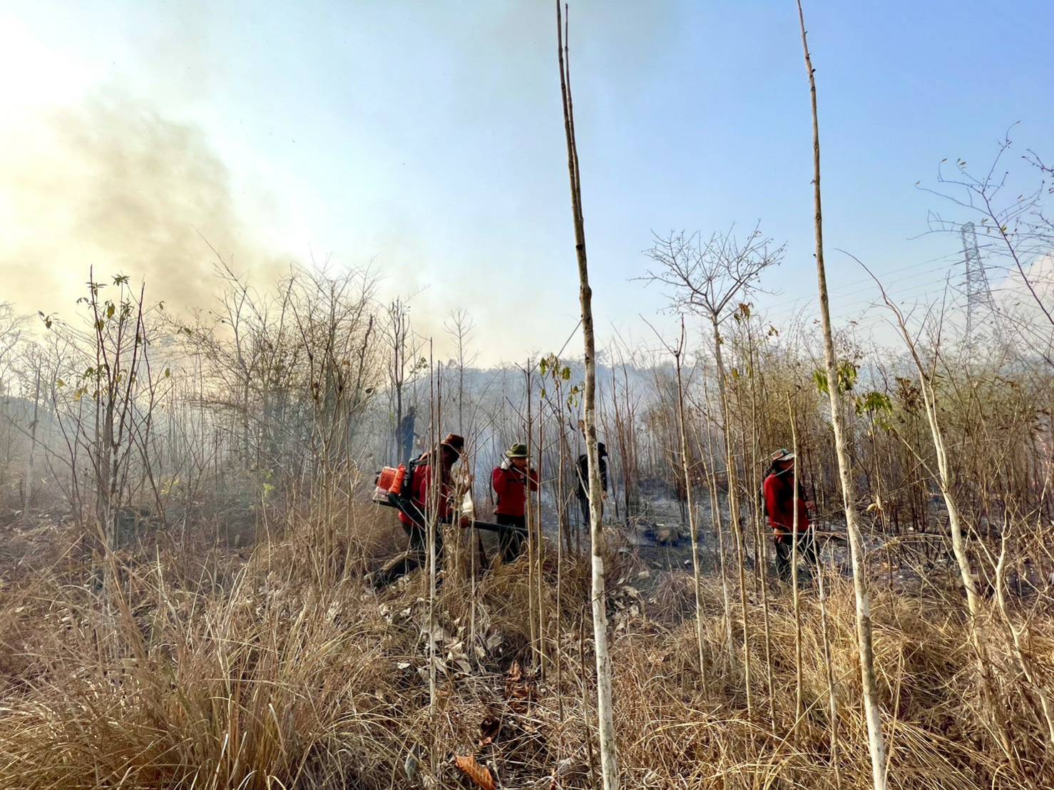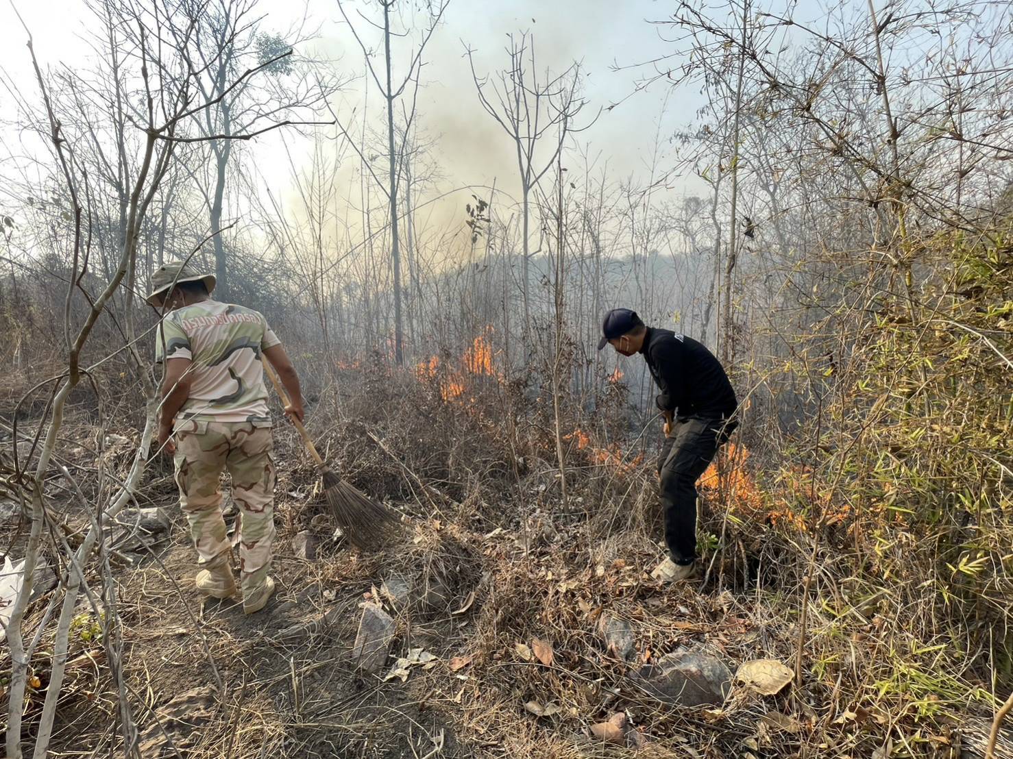 นายอำเภอนำกำลังพล อส.อ.วังทอง ที่ 4 เข้าบูรณาการกับ หน่วยฯพล.8(น้ำยาง)/จนท.ศูนย์ฯไฟป่า กรมป่าไม้/ชุดไฟป่า03/หน่วยป้องกันรักษาป่าที่ พล.1(วังทอง)/อบต.วังนกแอ่น/ทีมผู้ใหญ่บ้าน และชาวบ้าน จำนวน 40 คน