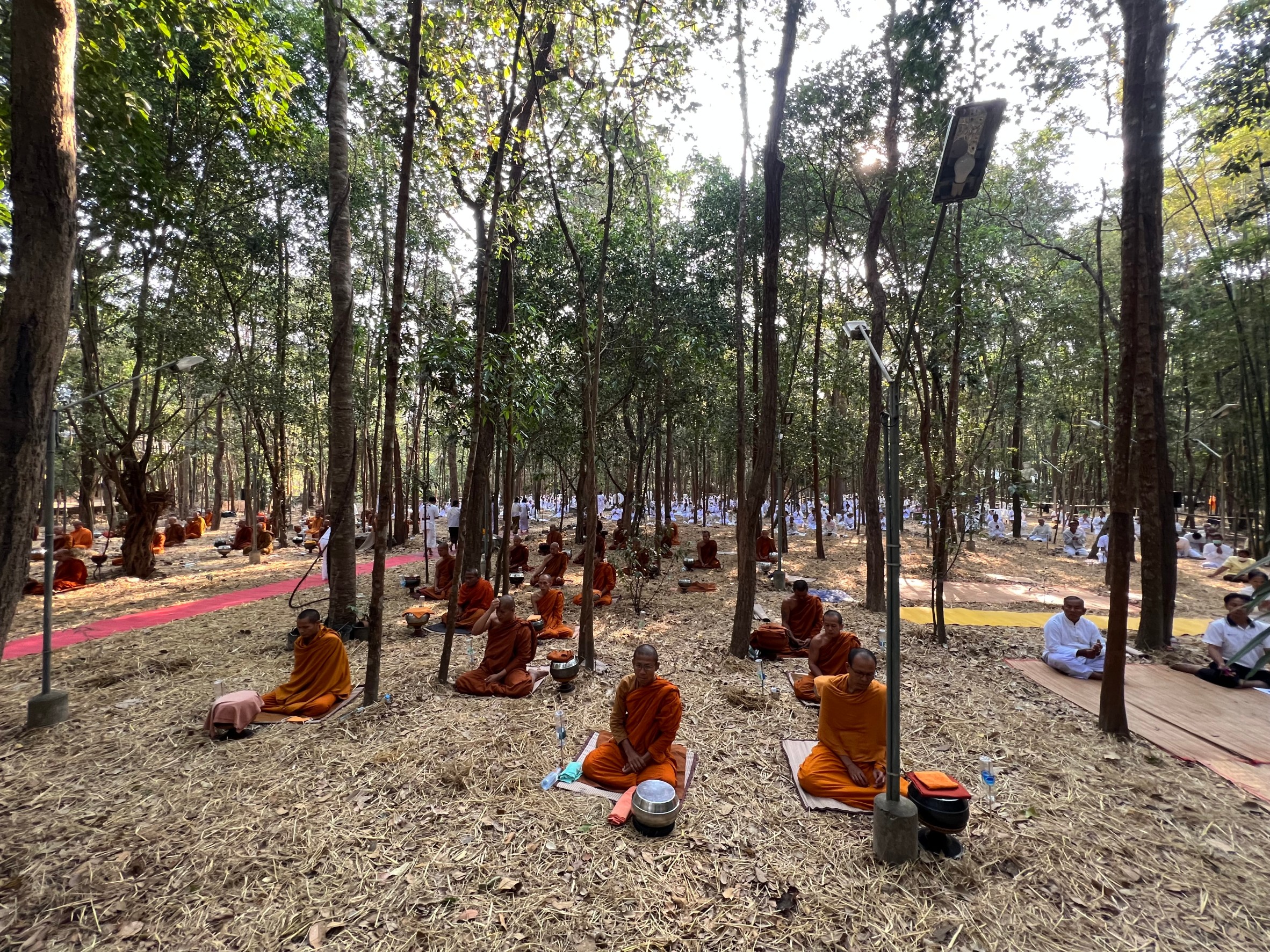 เมื่อวันที่ 22 ก.พ. 66 ผู้สื่อข่าวรายงานว่า ที่วัดป่าโนนกุดหล่ม ต.โพนเขวา อ.เมือง จ.ศรีสะเกษ ดร.กัลยาณี ธรรมจารีย์ นายกสมาคมส่งเสริมเครือข่ายการท่องเที่ยวศรีสะเกษ ได้นำคณะพุทธศาสนิกชนจำนวนมากพากันนุ่งขาวห่มขาวมาร่วมกันปฏิบัติธรรมปริวาสกรรม ระหว่างวันที่ 14 – 24 ก.พ. ของทุกปี ซึ่งพระครูจารุธรรมพิมล หรือพระอาจารย์ราวี จารุธัมโม เจ้าอาวาสวัดป่าโนนกุดหล่ม ได้นำคณะสงฆ์ แม่ชีและชาวพุทธ ปฏิบัติธรรมอย่างเคร่งครัดมาก โดยพากันนั่งปฏิบัติธรรมใต้ต้นไม้ปูพื้นด้วยฟางข้าว ทั้งนี้เพื่อเป็นการเสริมสร้างเพิ่มบุญบารมีให้กับตนเอง มีการร่วมกันทำบุญตักบาตร บำเพ็ญศีล ภาวนา ฟังพระธรรมเทศนา ซึ่ง ดร.กัลยาณี ธรรมจารีย์ ได้บริจาคเงินสด จำนวน 10,000 บาท ถวายแด่ พระครูจารุธรรมพิมล เจ้าอาวาสวัดป่าโนนกุดหล่ม เพื่อสมทบทุนสร้างมหาสถูปเจดีย์สาญจี ในโอกาสวันคล้ายวันเกิดครบรอบ 72 ปี โดยมีคณะสงฆ์และพุทธศาสนิกชนจำนวนมากร่วมอนุโมทนาบุญในครั้งนี้ด้วย