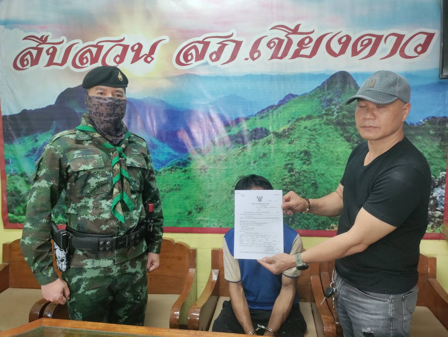 เมื่อวันที่ 26 กุมภาพันธ์ 2566 โดยการอำนวยการของ พ.ต.อ.เสกสรรค์ ขันคำนันต๊ะผกก.สภ.เชียงดาว จังหวัดเชียงใหม่ พ.ต.ท.สันติภาพ โชติภัทร์ รอง ผกก.สส.ฯ,พ.ต.ท.วรัญญู เขื่อนเพชร สว.สส.ฯเจ้าหน้าที่ชุดจับกุม สภ.เชียงดาวฯ อันมีร.ต.อ.คมสัน เสนากิตต์, ร.ต.อ.ประเสริฐ กระทู้ ,ร.ต.อ.ภาคภูมิ มณีจักร์ ,ร.ต.ต.สลิล พิมพิรัตน์ ,ด.ต.ศักดิ์ชัย เตอเก ,ด.ต.สมชาย เชื้อตรง ,ด.ต.วิเชียร พรมคำตัน ,ด.ต.ยรรยง คำตื้อ ,ด.ต.อุบล แก้วเป็ง , ส.ต.อ.ณภัทร อินกงลาด ,ส.ต.ต.ฉัตรมงคล ศรีวิชัย ร่วมกันกับจนท..ทหาร ศอ.ปส.ชน.ที่1ห้วยจะค่าน ก่อนการจับกุมชุดจับกุมทราบจากสายข่าวว่าผู้ถูกจับได้ลักลอบขายยาที่กระท่อมท้ายหม่บ้านและทราบเป็นผู้หนีหมายจับศาล ชุดจับกุมจึงได้ทำการครวจสอบและจับกุมตัวได้ทันที