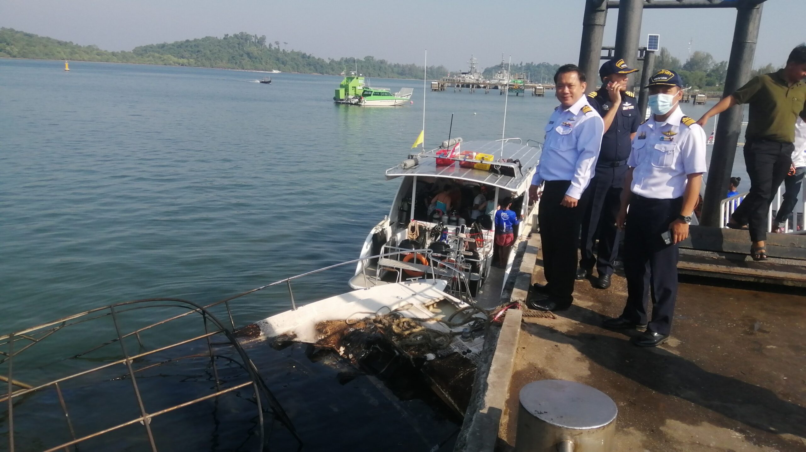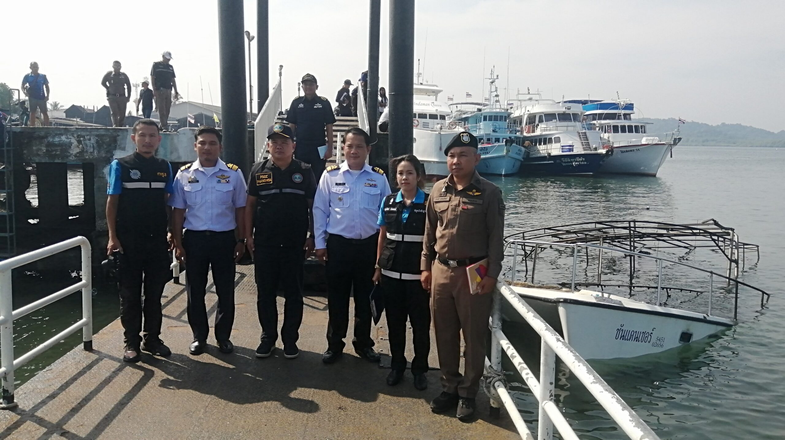 พังงา เจ้าท่าพังงา พร้อมหน่วยงานที่เกี่ยวข้องลงพื้นที่ตรวจสอบเหตุดำน้ำไฟลุกท่วมเสียหายทั้งลำพร้อมเร่งให้บริษัทเรือเร่งกู้ซากเรือขึ้นฝั่งโดยเร็ว
