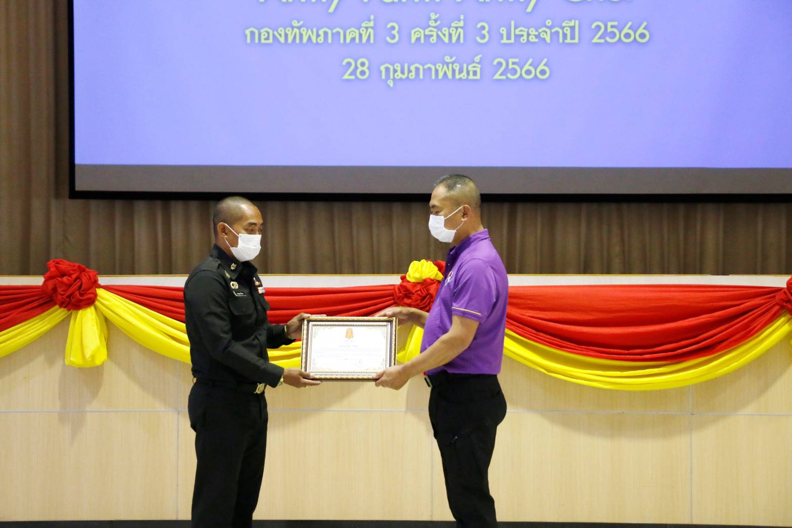 ในการนี้ พลโท สุริยะ เอี่ยมสุโร แม่ทัพภาคที่ 3 ได้ให้เกียรติเป็นประธานในพิธีมอบใบประกาศนียบัตร และโล่รางวัลแก่ทีมชนะเลิศ ทั้ง 2 กิจกรรม รวมทั้งได้ร่วมประกอบอาหารบนรถครัวสนามของกองทัพบก ร่วมกับเจ้าหน้าที่สูทกรรม กองพันทหารม้าที่ 9 กองพลทหารราบที่ 4 ในเมนู “ไก่ปลาร้า” เพื่อฝึกฝน และเป็นการเตรียมความพร้อมสำหรับช่วยเหลือประชาชนในยามเกิดภัยพิบัติ