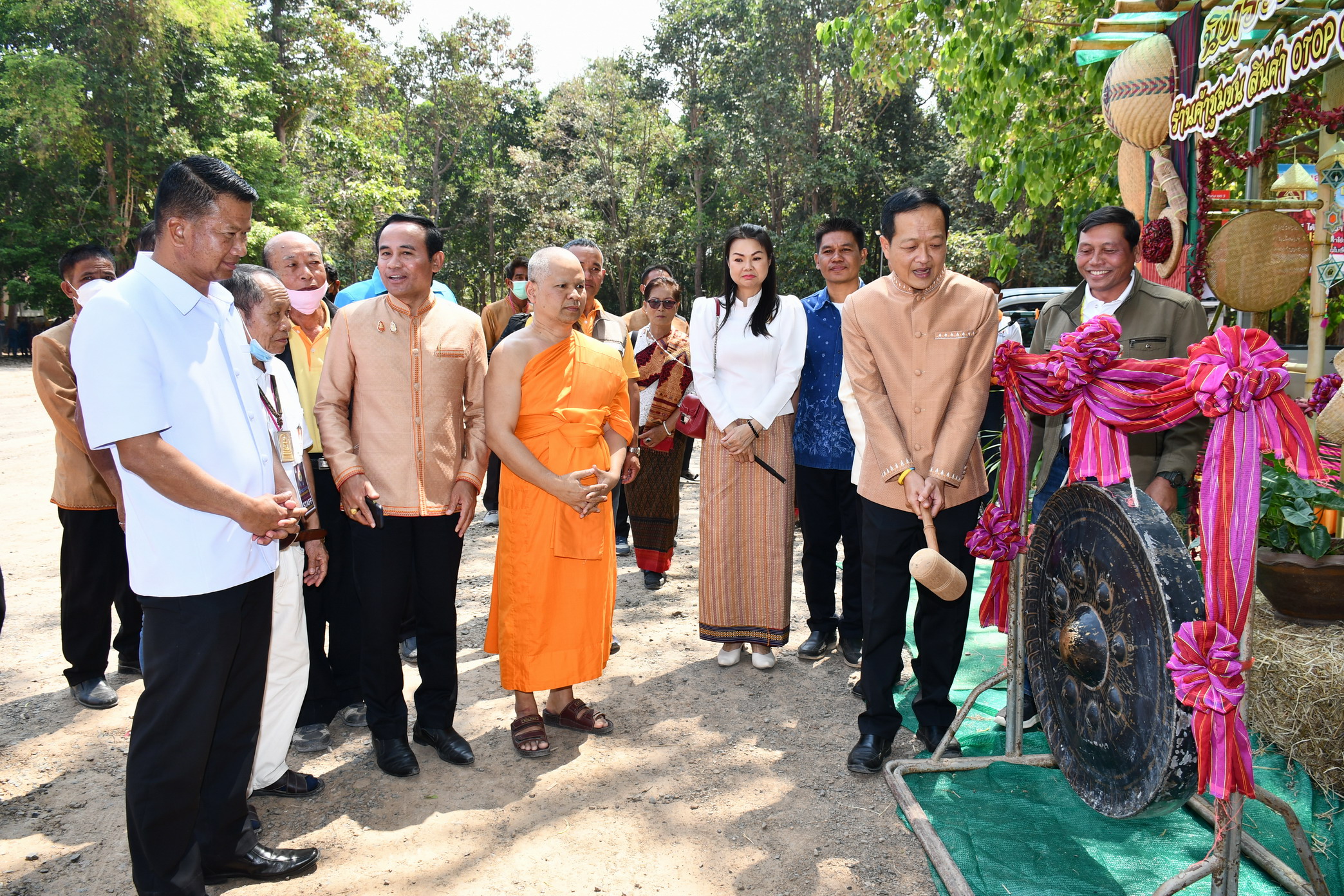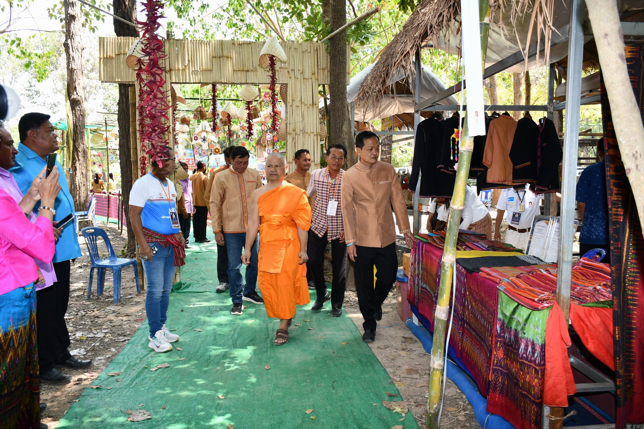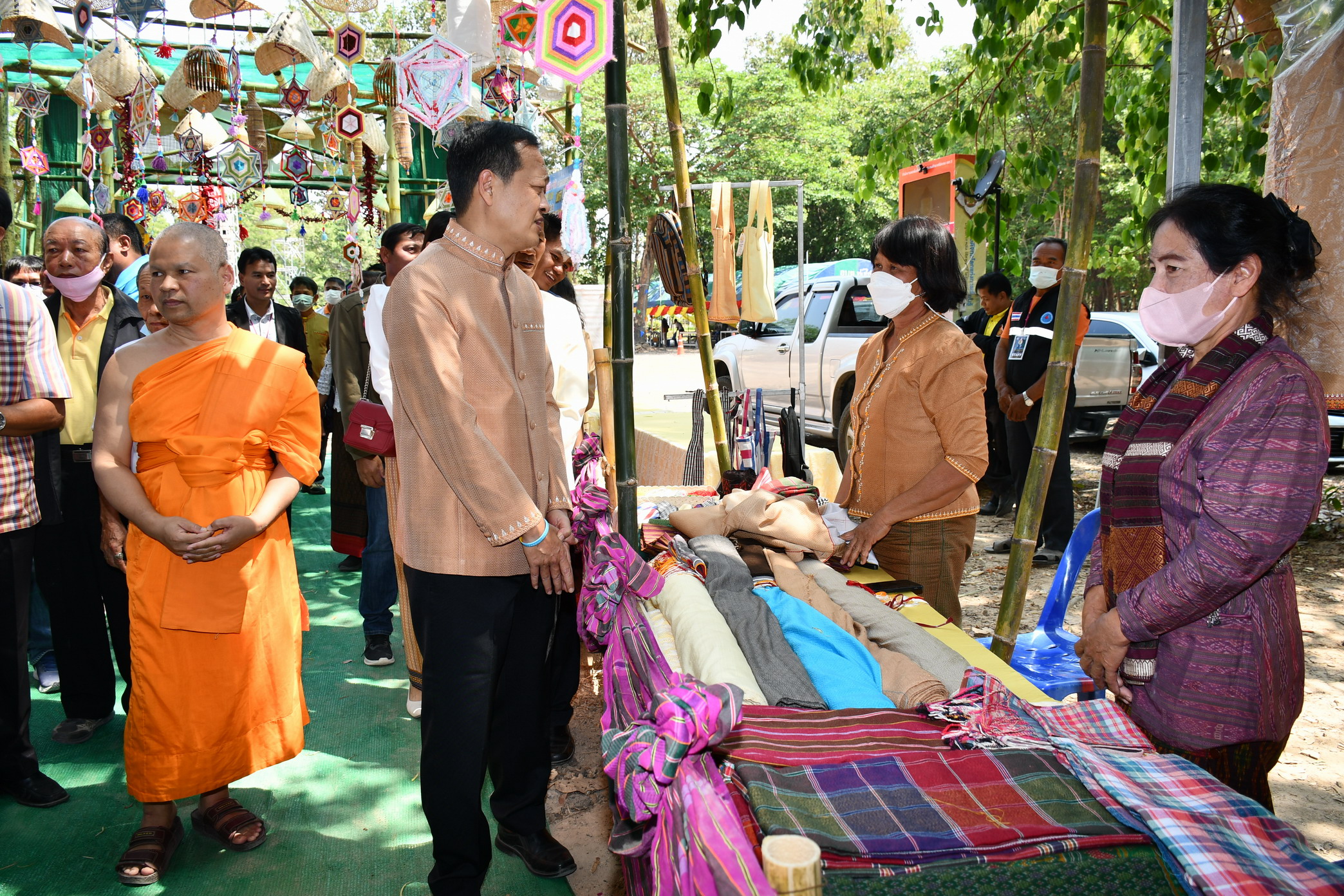 ศรีสะเกษ รองผู้ว่านำนายก อบต.ลั่นฆ้องเปิดร้านค้าชุมชนสินค้า OTOP 3 ตำบล อ.อุทุมพรพิสัยที่วัดป่าพิมลมังคลาราม ชมการแสดงหมอฟันหมอลำ โมฮัล ศกภูเขียว และสินค้าพื้นเมืองจำนวนมาก
