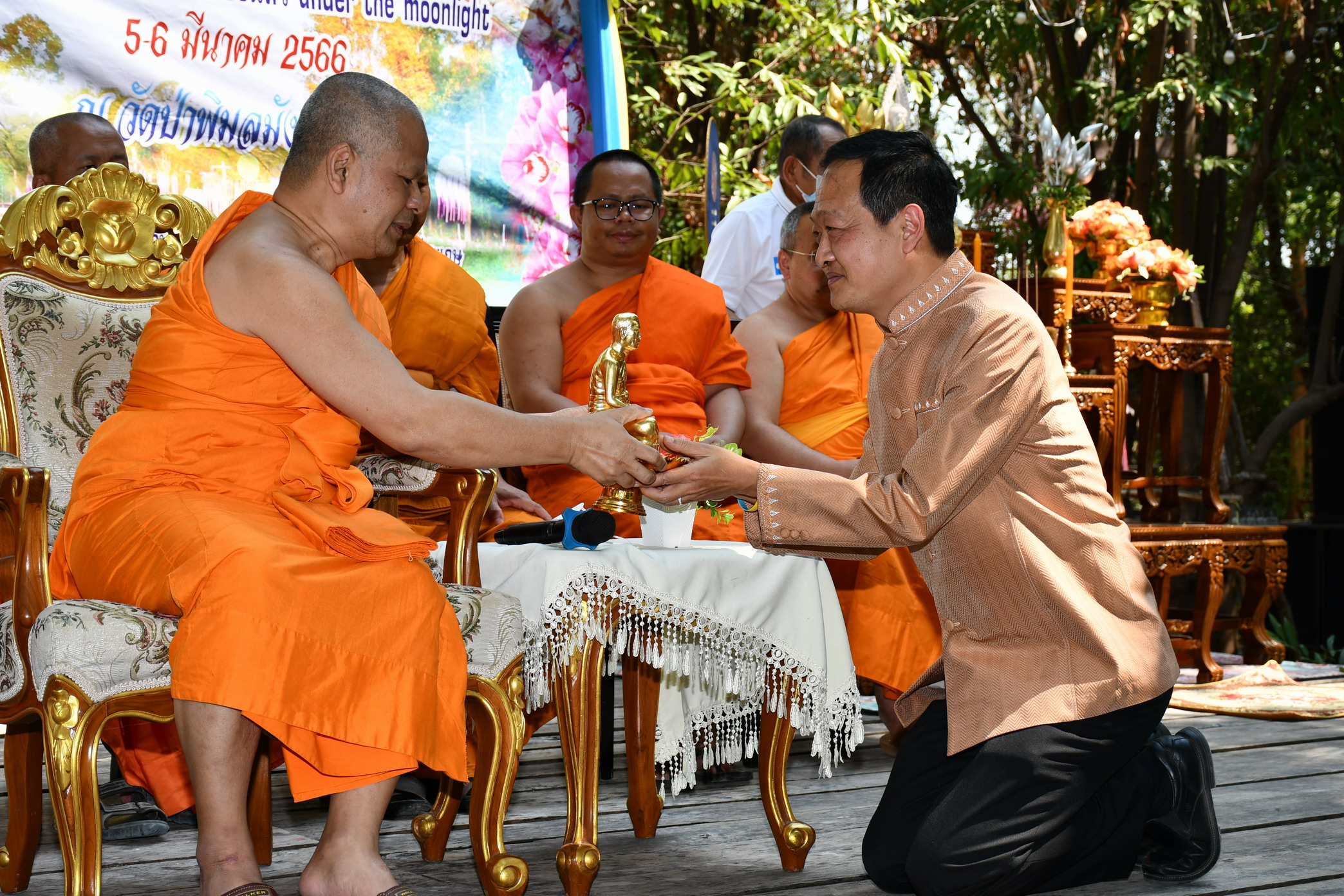 เมื่อวันที่ 4 มี.ค.66 ผู้สื่อข่าวรายงานว่า ที่วัดป่าพิมลมังคลาราม บ้านโนนแดงโนนม่วง ต.ทุ่งไชย อ.อุทุมพรพิสัย จ.ศรีสะเกษ นายอนุรัตน์ ธรรมประจำจิต รอง ผวจ.ศรีสะเกษ ได้เดินทางไปเป็นประธานในพิธีเปิดร้านค้าชุมชน สินค้า OTOP 3 ตำบล อ.อุทุมพรพิสัย จ.ศรีสะเกษ ซึ่งเจ้าคุณพระศรีญาณวิเทศ (พิมล ญาณวิมโล) เจ้าอาวาสวัดปากน้ำมิชิแกน เมืองสเตอริงไฮด์ รัฐมิชิแกน ประเทศสหรัฐอเมริกา และเจ้าอาวาสวัดป่าพิมลมังคลาราม ร่วมกับคณะกรรมการวัดป่าพิมลมังคลาราม ชาวบ้านโนนแดง – โนนม่วงและหมู่บ้านใกล้เคียง ได้ร่วมกันจัดงาน “Under The Moonlight” เพ็ญมาฆมาสตักบาตรดอกไม้ใต้แสงจันทร์ ขึ้นในระหว่างวันที่ 4 – 6 มี.ค. 2566 นี้ และมีการจัดงานร้านค้าชุมชน สินค้า OTOP 3 ตำบล ได้แก่ อบต.ทุ่งไชย เทศบาล ต.โคกจาน อ.อุทุมพรพิสัย และเทศบาล ต.บุสูง อ.วังหิน ในการจัดงานครั้งนี้ด้วย ซึ่งหลังจากพิธีเปิดงานแล้ว มีการแสดง “นาฏยะธรรมคีตะ” นำโดยหมอฟันหมอลำ ทันตแพทย์โมฮัล ศกภูเขียว และคณะ ซึ่งขับร้องหมอลำและร้องเพลงได้ไพเราะ และแสดงหมอลำได้อย่างยิ่งใหญ่ตระการตา ได้รับเสียงปรบมือแสดงความชื่นชมความสามารถของทันตแพทย์โมฮัล ศกภูเขียว จากผู้ที่มาชมการแสดงจำนวนมากอย่างอบอุ่น จากนั้น รอง ผวจ.ศรีสะเกษและคณะ ได้เดินไปที่บริเวณร้านค้าชุมชนและประกอบพิธีลั่นฆ้องเพื่อเปิดร้านค้าชุมชนและเยี่ยมชมสินค้า OTOP จำนวนมากที่บรรดากลุ่มผู้ผลิตสินค้า OTOP นำเอาสินค้าต่าง ๆ เช่น ผ้าไหม ผลิตผลทางการเกษตรต่าง ๆ โดยมี นายเด่นชัย ขาวสะอาด ประธานคณะกรรมการวัดป่าพิมล มังคลาราม เป็นผู้กล่าวรายงานและมี นายประหยัด ถิลา วัฒนธรรมจังหวัดศรีสะเกษ นายสว่าง ดวงอาจ นายก อบต.ทุ่งไชย นายนิรุต เกษกุล นายกเทศมนตรีเทศบาล ต.โคกจาน และนายรักชาติ ฤทธิ์เดช นายกเทศมนตรีเทศบาล ต.บุสูง ข้าราชการ พ่อค้า ประชาชน ครู น.ร.มาร่วมพิธีจำนวนมาก