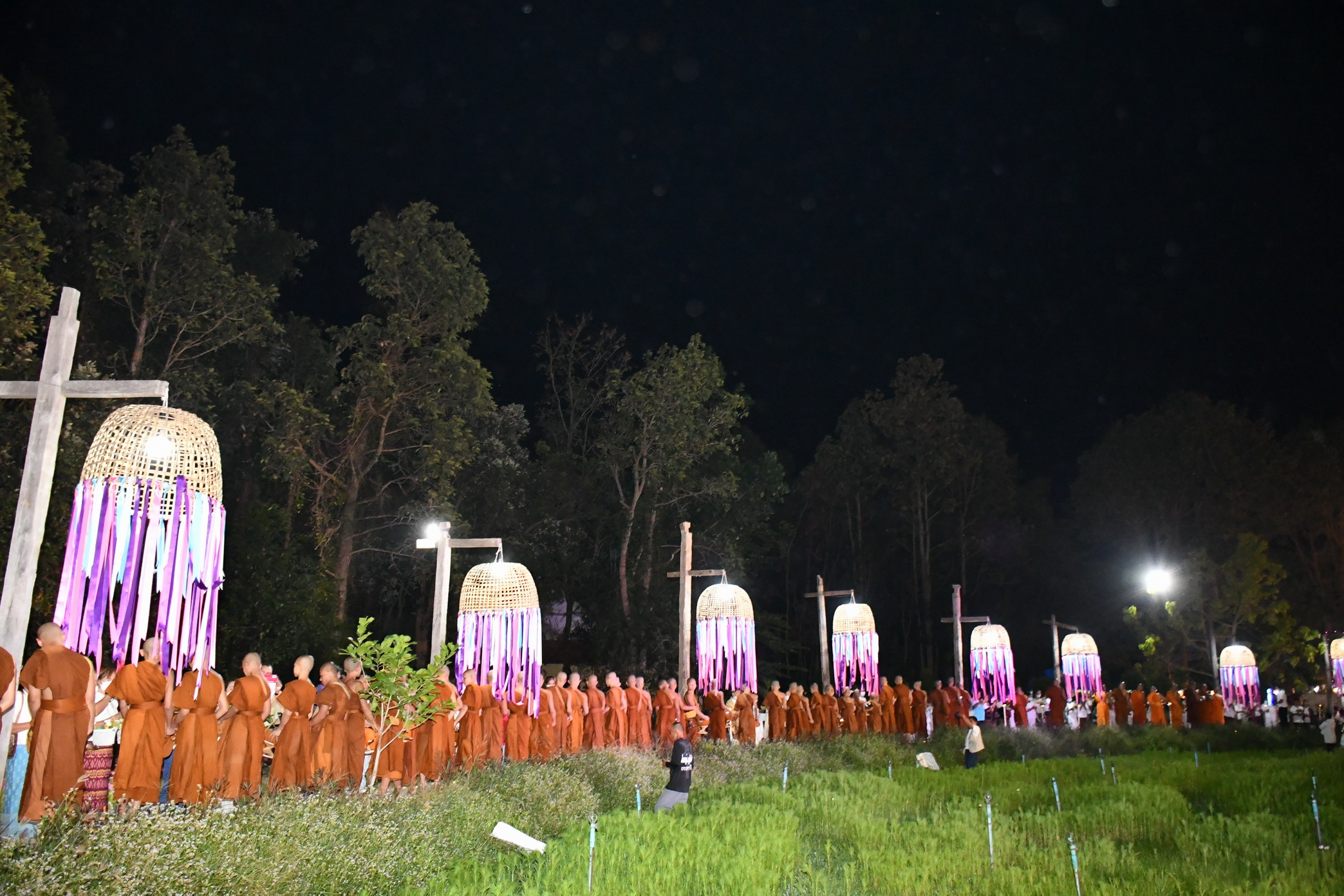 ศรีสะเกษ วัดป่าพิมลมังคลารามจัดพิธีตักบาตรดอกไม้ใต้แสงจันทร์แห่งแรกของโลกในวันมาฆบูชา ผู้ว่านำชาวพุทธจำนวนมากร่วมพิธีตักบาตรและเวียนเทียนใต้แสงจันทร์อิ่มบุญยิ่งใหญ่สวยงามตระการตา