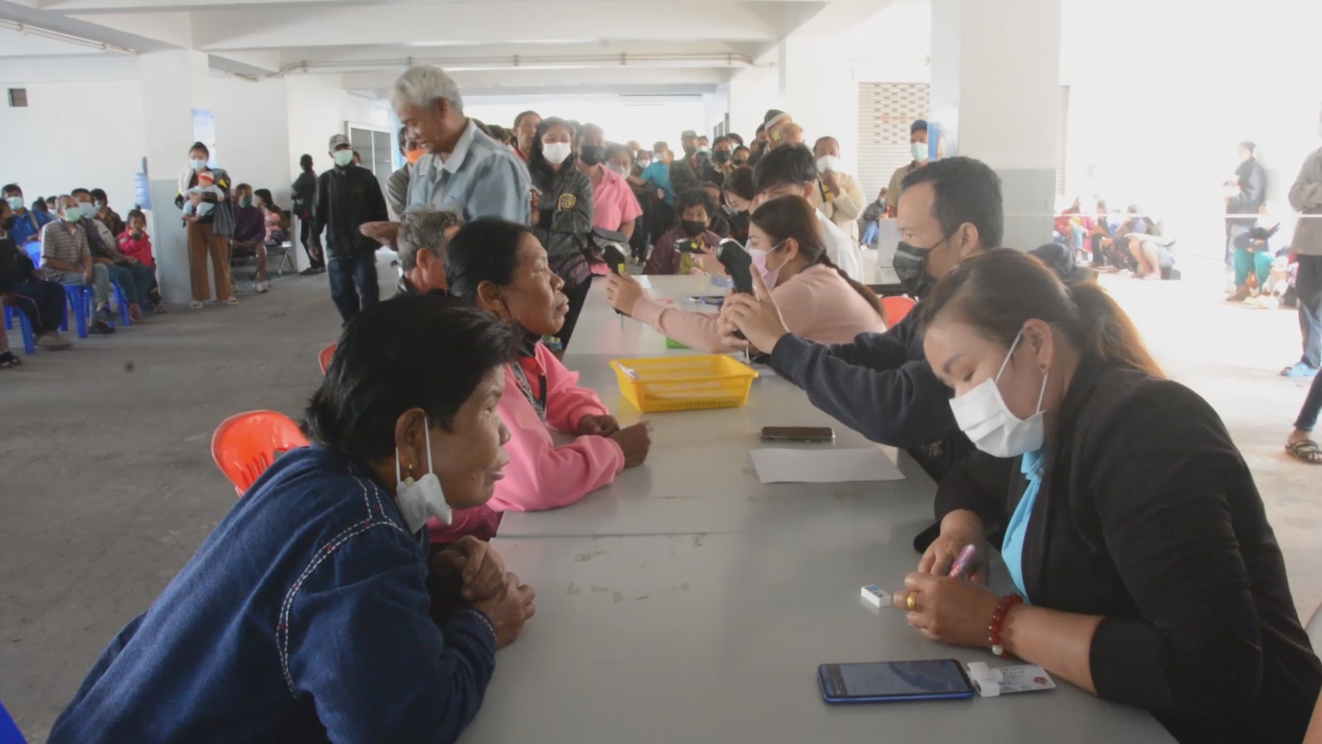แม้ว่าจะผ่านมากว่า 1 อาทิตย์ ที่ทางภาครัฐเปิดให้ผู้ที่ผ่านการพิจารณาได้เดินทางมายืนยันตัวตน ส่งผลให้บรรยากาศที่ธนาคารกรุงไทย สาขามุกดาหาร วันที่ 8 มี.ค.66 ตั้งแต่เช้านี้เวลา 07.00 น.มีประชาชนที่ผ่านการพิจารณาพากันเดินทางเข้ามารอตอแถวรับบัตรคิวกันตั้งแต่เช้า เพื่อรอเจ้าหน้าที่เรียกเข้าไปดำเนินการยืนยันตัวตน ซึ่งทาง เจ้าหน้าที่ต้องขยายโต๊ะเพิ่มเจ้าหน้าที่ ดำเนินการตั้งจุดให้บริการยืนยันตัวตน