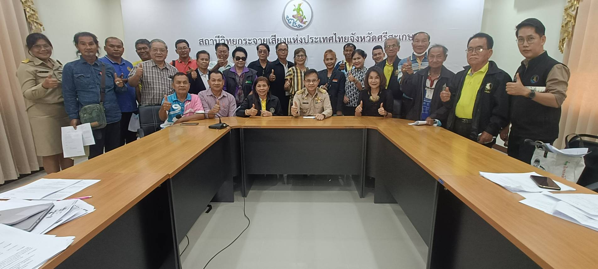 โดยมีนางสาว พรนภา ชาชมภู ผอ.สวท.ศรีสะเกษ และนายธนกรณ์ ยิ้มสงวน ผู้ช่วยประชาสัมพันธ์จังหวัดศรีสะเกษ นำอาสาสมัครประชาสัมพันธ์ประจำหมู่บ้านและชุมชน (อป.มช.) จังหวัดศรีสะเกษ กรมประชาสัมพันธ์ เข้าร่วมรับทราบนโยบายแนวทางในการพัฒนาการดำเนินงานของอาสาสมัครประชาสัมพันธ์ประจำหมู่บ้านและชุมชน (อป.มช.) ของกรมประชาสัมพันธ์ นายสุพิชัย หล่าสกุลประชาสัมพันธ์ จ.ศรีสะเกษ กล่าวว่า กรมประชาสัมพันธ์ได้มีแนวทางในการพัฒนา(อป.มช.) คือ การสร้างความผูกพันกับเครือข่าย อป.มช.จังหวัดศรีสะเกษ