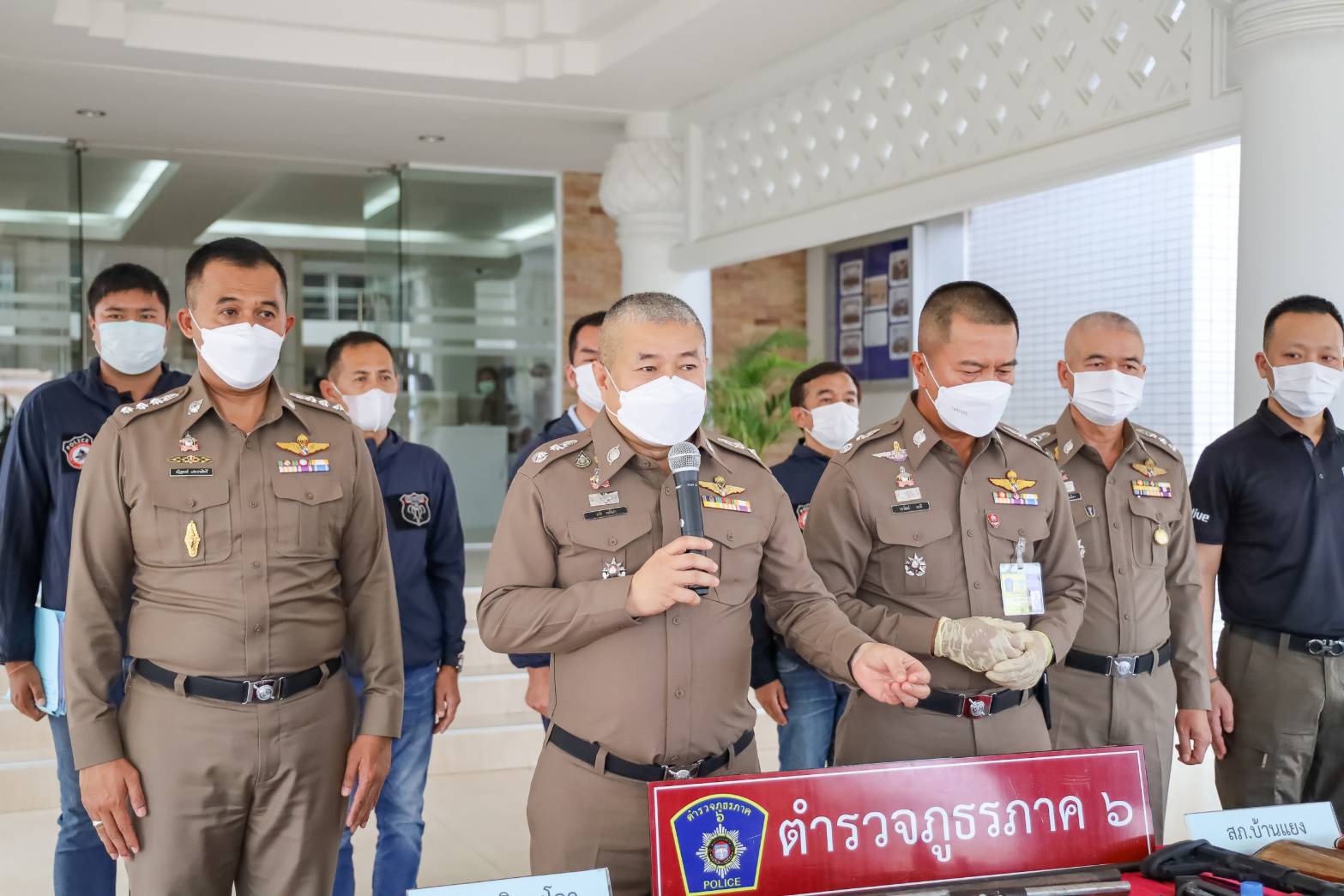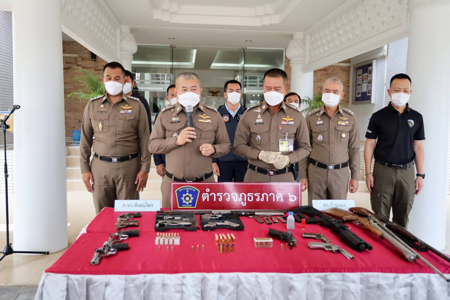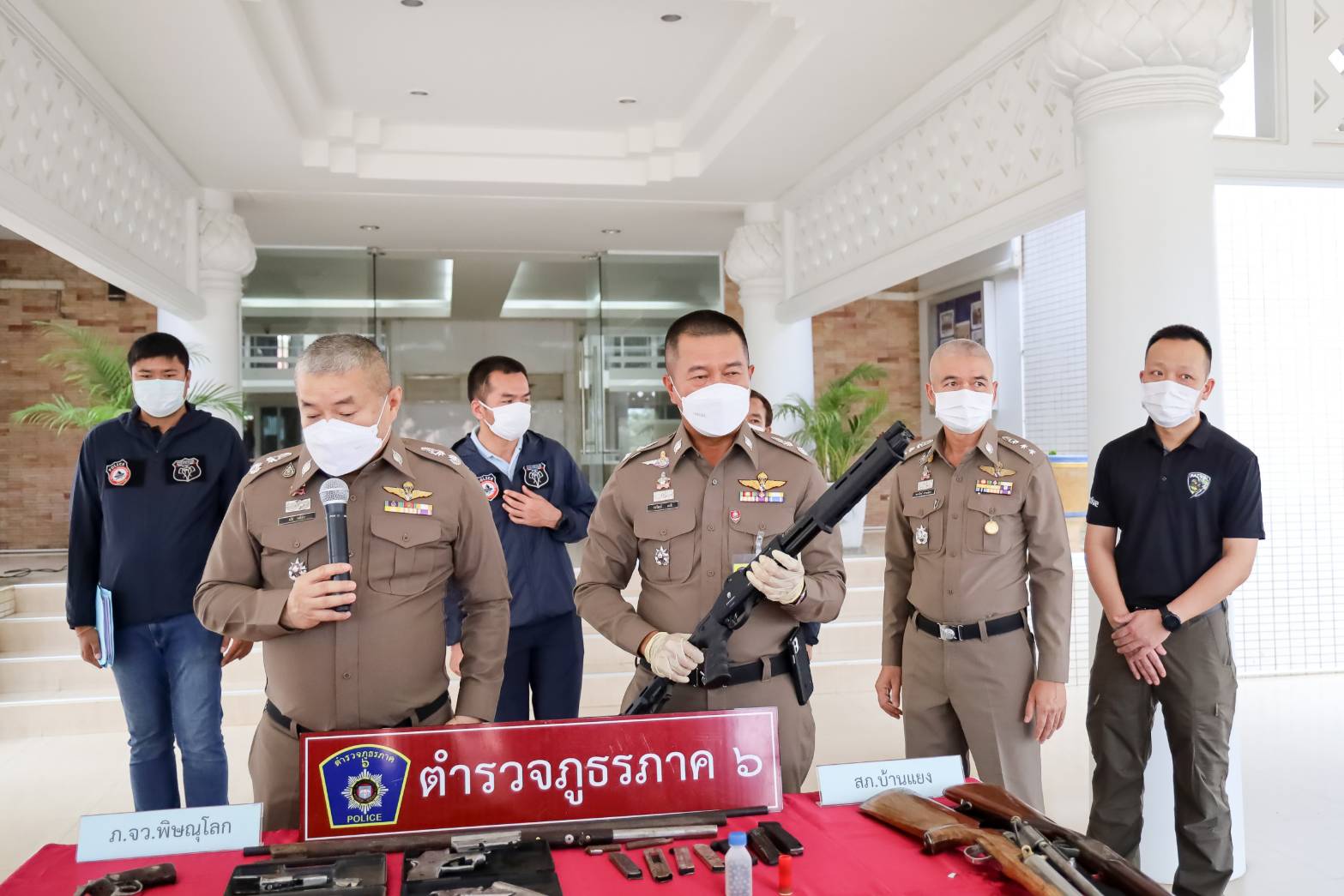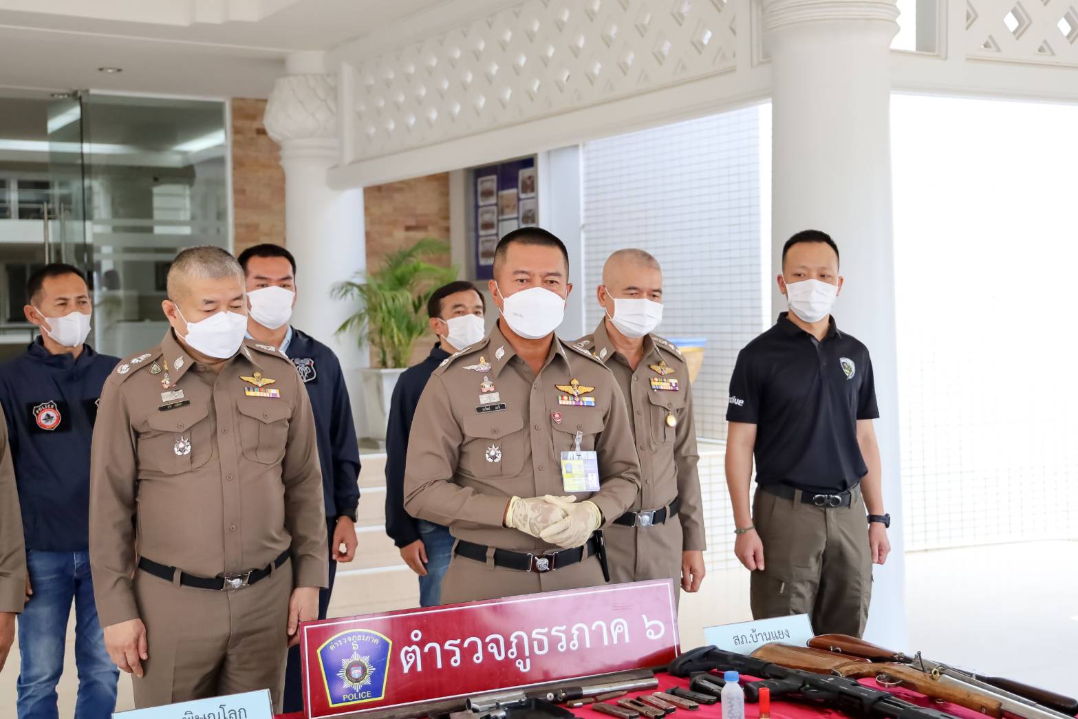 รอง ผบช.ภ.6 เป็นประธานในการแถลงข่าวการจับกุมผู้ต้องหา ในข้อหา มีอาวุธและเครื่องกระสุนปืนไว้ในครอบครองโดยไม่ได้รับอนุญาตจากนายทะเบียน,ทำ,ซื้อ,มี,ใช้,สั่ง หรือนำเข้าซึ่งอาวุธปืนและเครื่องกระสุนปืนโดยไม่ได้รับอนุญาตจากนายทะเบียน และเสพยาเสพติดให้โทษประเภท 1 (ยาบ้า) โดยผิดกฎหมาย