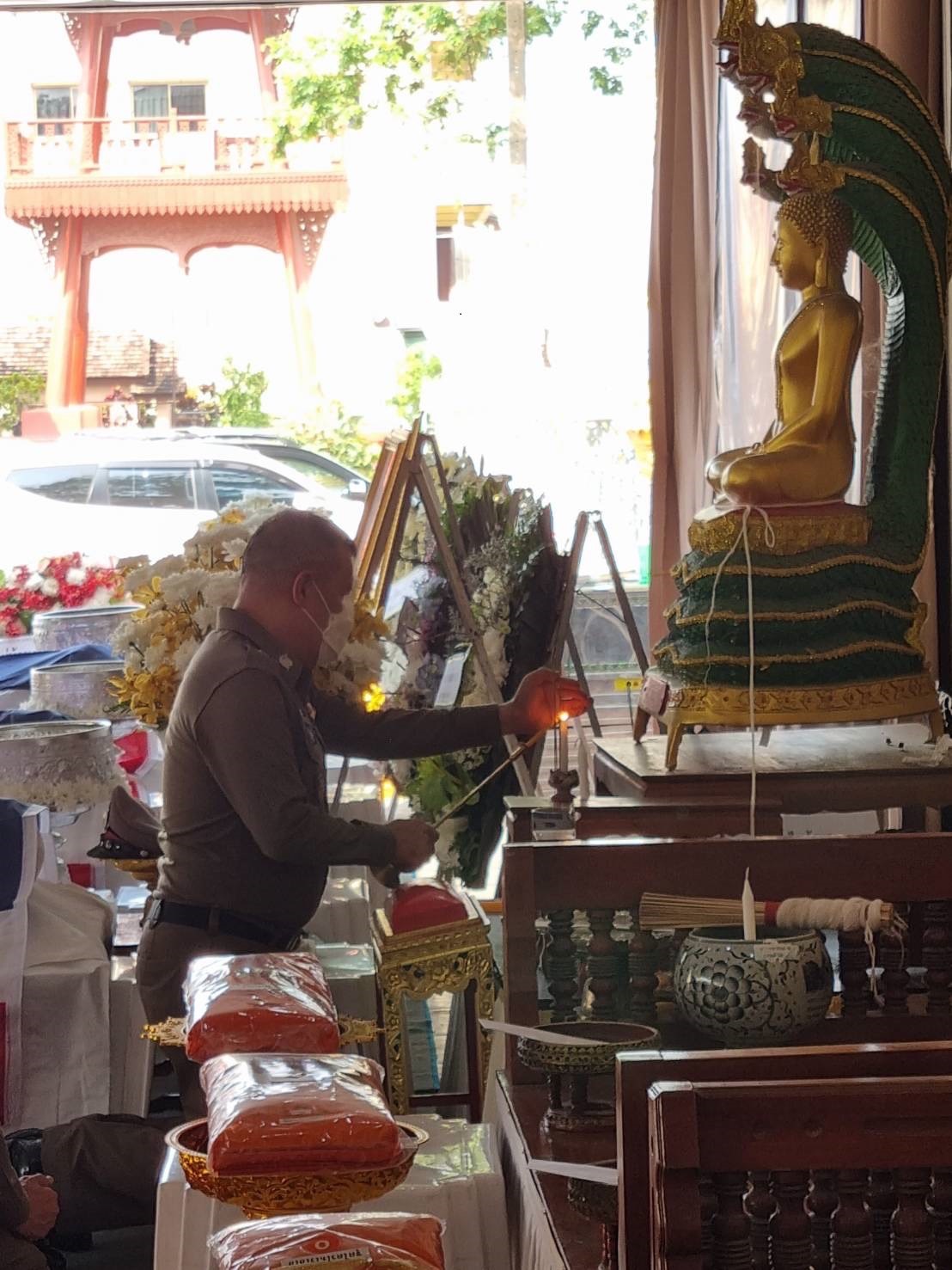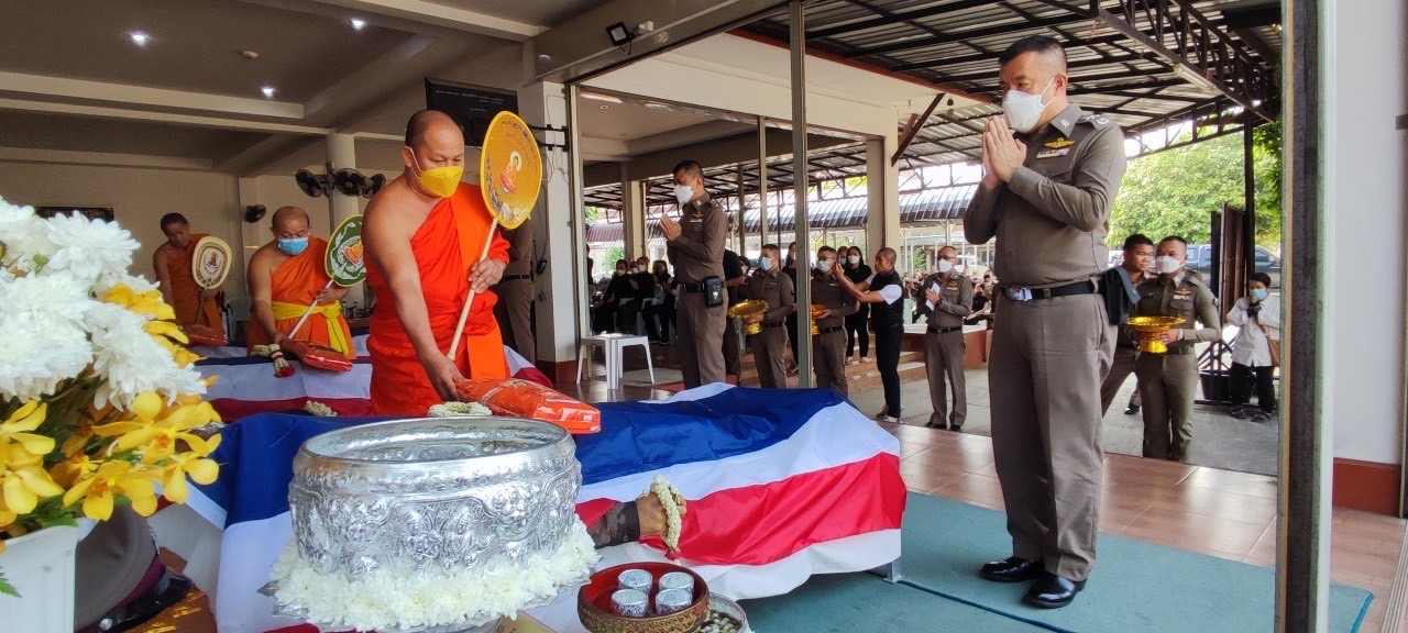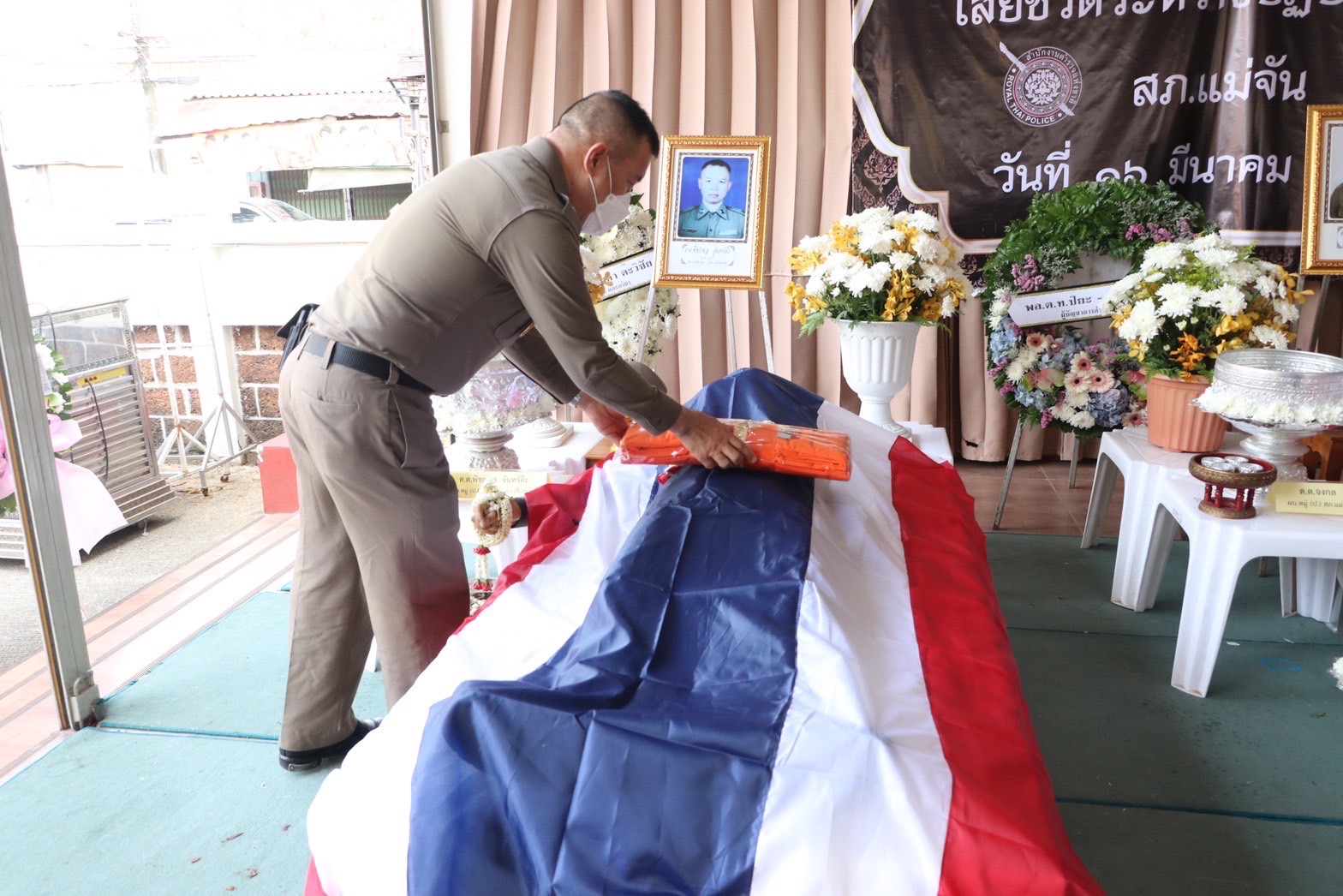 โดยมี พ.ต.อ.สันติ กองสมัคร รรท.ผบก.ภ.จว.เชียงราย, นายวรายุทธ ค่อมบุญ นายอำเภอแม่จัน , พ.ต.อ.ทรรศ์ธนสรณ์ จุฑารัตน์ ผกก.สภ.แม่จัน และผู้บังคับบัญชา ตลอดจนเพื่อนข้าราชการตำรวจร่วมพิธีรดน้ำศพในครั้งนี้ ณ ศาลาการเปรียญ วัดกาสา อ.แม่จัน จ.เชียงราย