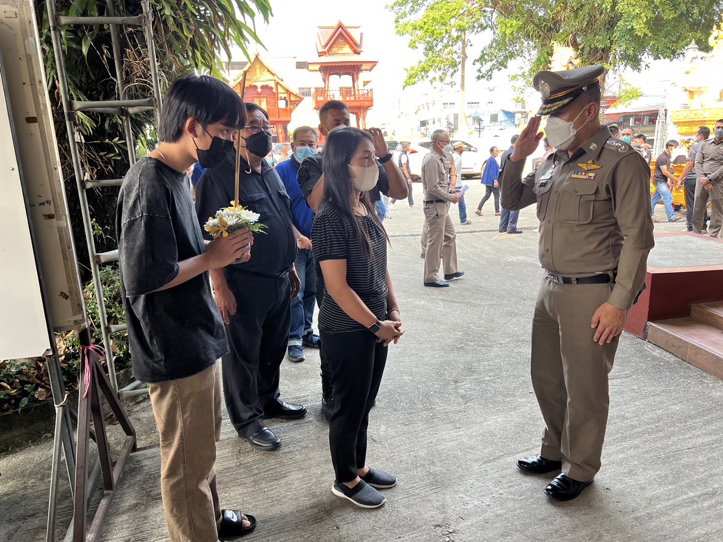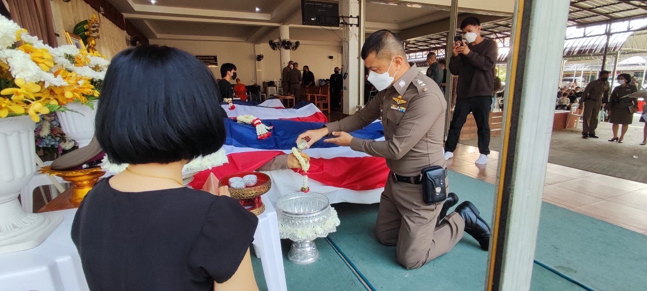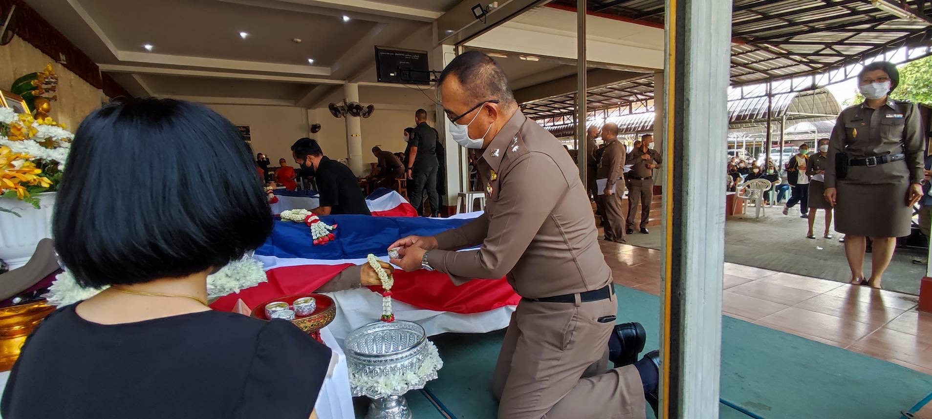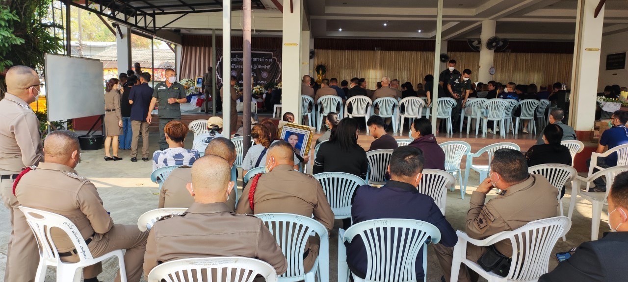 โดยมี พ.ต.อ.สันติ กองสมัคร รรท.ผบก.ภ.จว.เชียงราย, นายวรายุทธ ค่อมบุญ นายอำเภอแม่จัน , พ.ต.อ.ทรรศ์ธนสรณ์ จุฑารัตน์ ผกก.สภ.แม่จัน และผู้บังคับบัญชา ตลอดจนเพื่อนข้าราชการตำรวจร่วมพิธีรดน้ำศพในครั้งนี้ ณ ศาลาการเปรียญ วัดกาสา อ.แม่จัน จ.เชียงราย