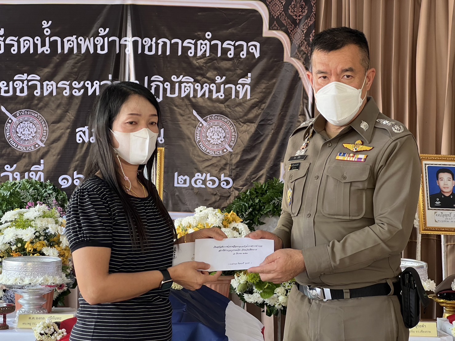 ทั้งนี้ พล.ต.ท.ปิยะ ต๊ะวิชัย ผบช.ภ.5 ได้มอบเงินช่วยเหลือซึ่งเป็นสวัสดิการของตำรวจภูธรภาค 5 ประกอบด้วยเงินกองทุนสวัสดิการตำรวจภูธรภาค 5 จำนวน 20,000 บาท เงินทุนสมเด็จพระศรีนครินทราบรมราชชนนี จำนวน 3,000 บาท และเงินกองทุนสวัสดิการ สภ.แม่จัน จำนวน 10,000 บาท