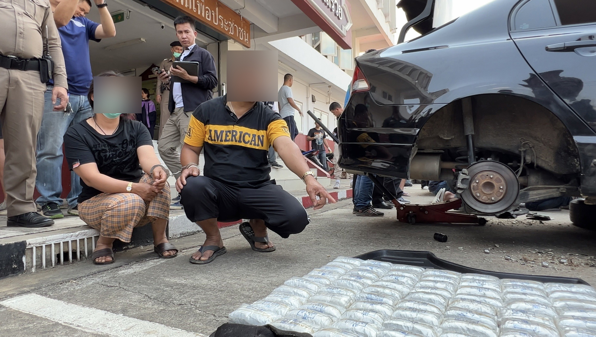!!เชียงราย!! ตำรวจแม่สรวยจับยาบ้าซุกซ่อนช่องลับใต้ประตูเก๋ง 276,000 เม็ด