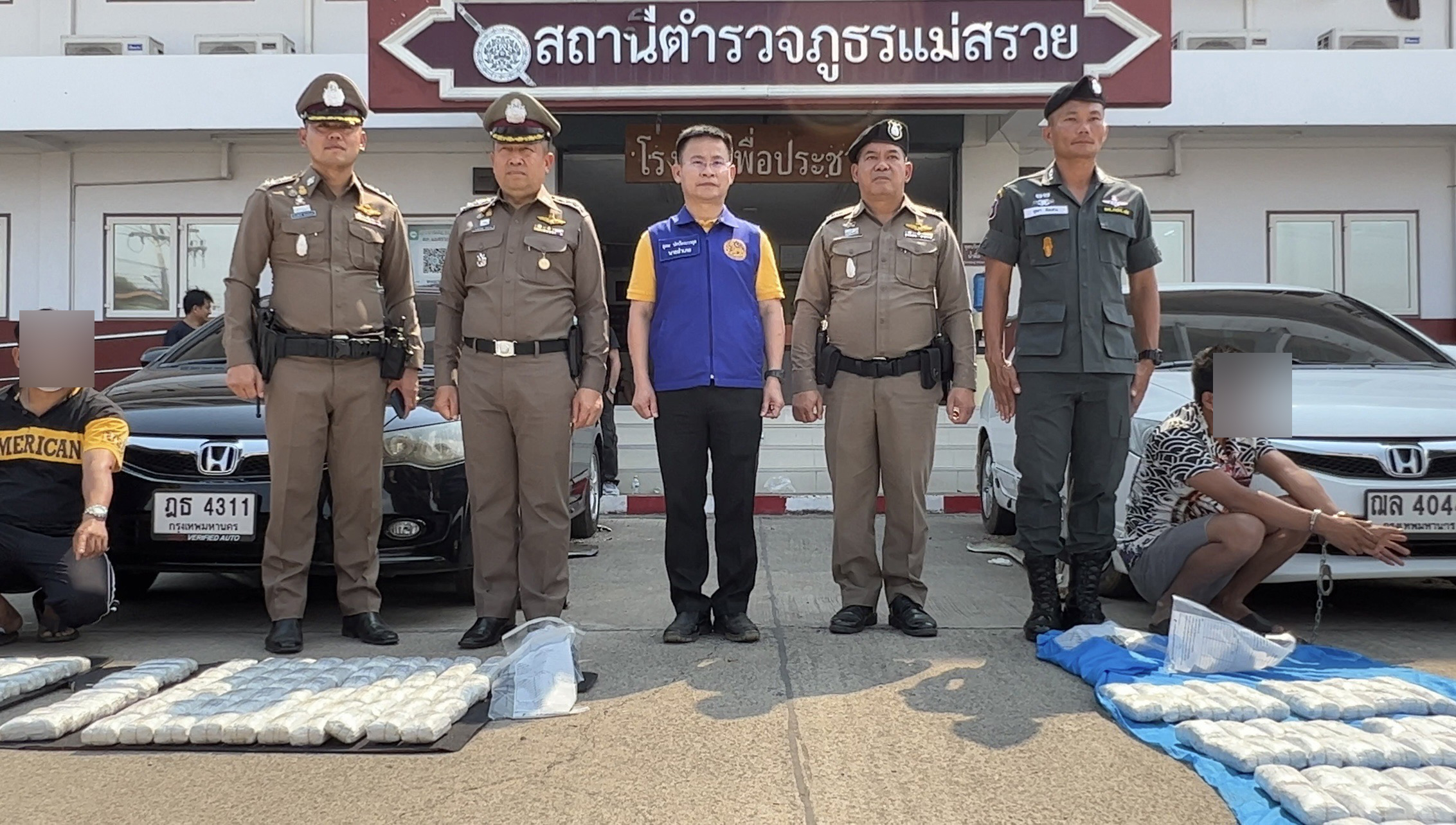 ล่าสุด พ.ต.อ.พงษ์สวัสดิ์ ไชยบาล รอง ผบก.ภ.จว.เชียงราย พ.ต.อ.เกียรติศักดิ์ จิตรประสาร ผกก.สภ.แม่สรวย และนายอุดม ปกป้องบวรกุล นายอำเภอแม่สรวย ได้ร่วมกันตรวจสอบรถยนต์เก๋งอีก 2 คัน ซึ่งเจ้าหน้าที่ตำรวจ สภ.แม่สรวย ได้รับการประสานให้สกัดจับเอาไว้ได้เป็นยี่ห้อฮอนด้า รุ่นซีวิค สีดำ หมายเลขทะเบียน ฎธ 4311 กรุงเทพฯ มีนายอัครวัฒน์เป็นคนขับและมีแฟนสาวนั่งโดยสารไปด้วยอีก 1 คน ขณะหลบหนีไปทางสามแยกฝาง อ.แม่สรวย และอีกคันเป็นยี่ห้อฮอนด้า รุ่นซีวิค สีขาว หมายเลขทะเบียน ฌล 4044 กรุงเทพฯ มีนายพีรพัฒน์ เป็นคนขับขณะขับหลบหนีเข้าไปบริเวณปั้มน้ำมันพีที อ.แม่สรวย ซึ่งผลการตรวจค้นภายในรถปรากฎว่าตรงช่องลับที่อยู่บริเวณด้านบนของล้อรถทั้ง 2 ข้าง ซุกซ่อนยาเสพติดประเภทยาบ้าเอาไว้ในลักษณะเหมือนคันแรกที่ถูกสกัดได้ท้องที่ อ.พาน โดยรถยนต์เก๋งยี่ห้อฮอนด้า รุ่นซีวิค สีดำ หมายเลขทะเบียน ฎธ 4311 กรุงเทพฯ พบยาบ้าจำนวน 124 มัด ภายในมียาบ้า 280,000 เม็ด และยี่ห้อฮอนด้า รุ่นซีวิค สีดำ หมายเลขทะเบียน ฎธ 4311 กรุงเทพฯ จำนวน 170 มัด ภายในมียาบ้า 340,000 เม็ด จึงได้จับกุมตัวทั้งหมดเอาไว้ จากการสืบสวนขยายผลเจ้าหน้าที่ทราบว่ายาเสพติดที่ซุกซ่อนมากับรถยนต์เก๋งทั้ง 3 คัน ขนมาจากท้องที่ ต.ดอยฮาง อ.เมืองเชียงราย โดยคนขับได้รับค่าจ้างคันละ 200,000 บาท มีเป้าหมายนำไปส่งที่ภาคกลางแต่ทางเจ้าหน้าที่ ตชด.สืบทราบจึงได้ประสานตำรวจภูธรแต่ละท้องที่ร่วมกันสกัดจับได้เสียก่อนโดยรวมของกลางยาบ้าทั้ง 3 คัน จำนวน 896,000 เม็ด เจ้าหน้าที่จึงนำตัวทั้งหมดส่งพนักงานสอบสวนดำเนินคดีตามกฎหมายต่อไป.