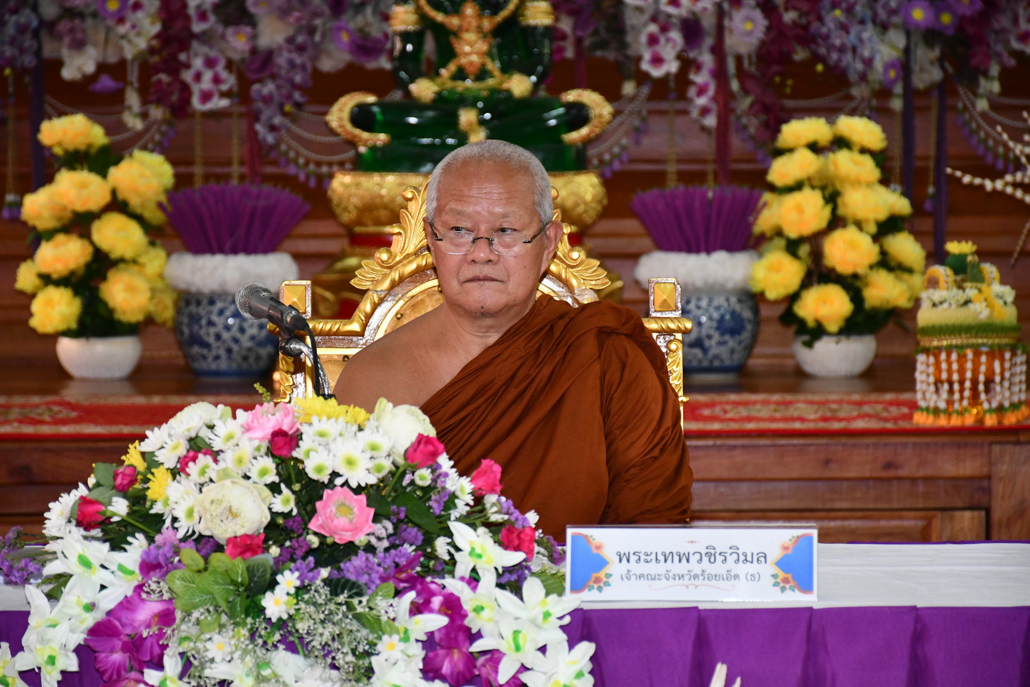 พระเทพวชิรวิมล เจ้าคณะจังหวัดร้อยเอ็ด (ธ) ปฏิบัติหน้าที่ประธานคณะผู้ตรวจการณ์ คณะสงฆ์ภาค 10 (ธ) กล่าวว่า เนื่องจากว่าเจ้าคณะใหญ่ธรรมยุตคือสมเด็จพระสังฆราชทรงมีบัญชาแต่งตั้งคณะผู้ตรวจการณ์คณะสงฆ์ทั่วประเทศแบ่งกันเป็นสายไป โดยสายนี้เป็นของเจ้าคณะภาค 9 วัดปทุมวนาราม เป็นประธานผู้ตรวจการณ์ แต่ว่า พระเทพดิลก ติดกิจของสงฆ์ที่สำคัญมากไม่สามารถมาได้ อาตมาภาพจึงได้รับมอบหมายให้มาแทน ซึ่งการมาตรวจก็หมายความว่ามาให้กำลังใจ และเพื่อรับทราบปัญหาต่างๆของคณะสงฆ์ของ จ.ศรีสะเกษ อาตมาภาพได้พบเห็นว่า พระวินัยเมธี เจ้าคณะ จ.ศรีสะเกษ และคณะสงฆ์ศรีสะเกษ (ธ.) มีความสามัคคีกลมเกลียวเป็นอันหนึ่งอันเดียวกัน ได้ร่วมกันบริหารงานและพัฒนางานของคณะสงฆ์ โดยเฉพาะอย่างยิ่งวัดไพรพัฒนามีการพัฒนาทุกด้านเป็นอย่างดียิ่ง นับว่าเป็นสิ่งที่น่าชื่นชมยินดีและนับว่าเป็นตัวอย่างที่ดีของคณะสงฆ์ธรรมยุต ต่อจากนี้ อาตมาภาพและคณะก็จะได้เดินทางไปตรวจที่ จ.อุบลราชธานี จ.อำนาจเจริญและจ.ยโสธรตามลำดับต่อไป/////