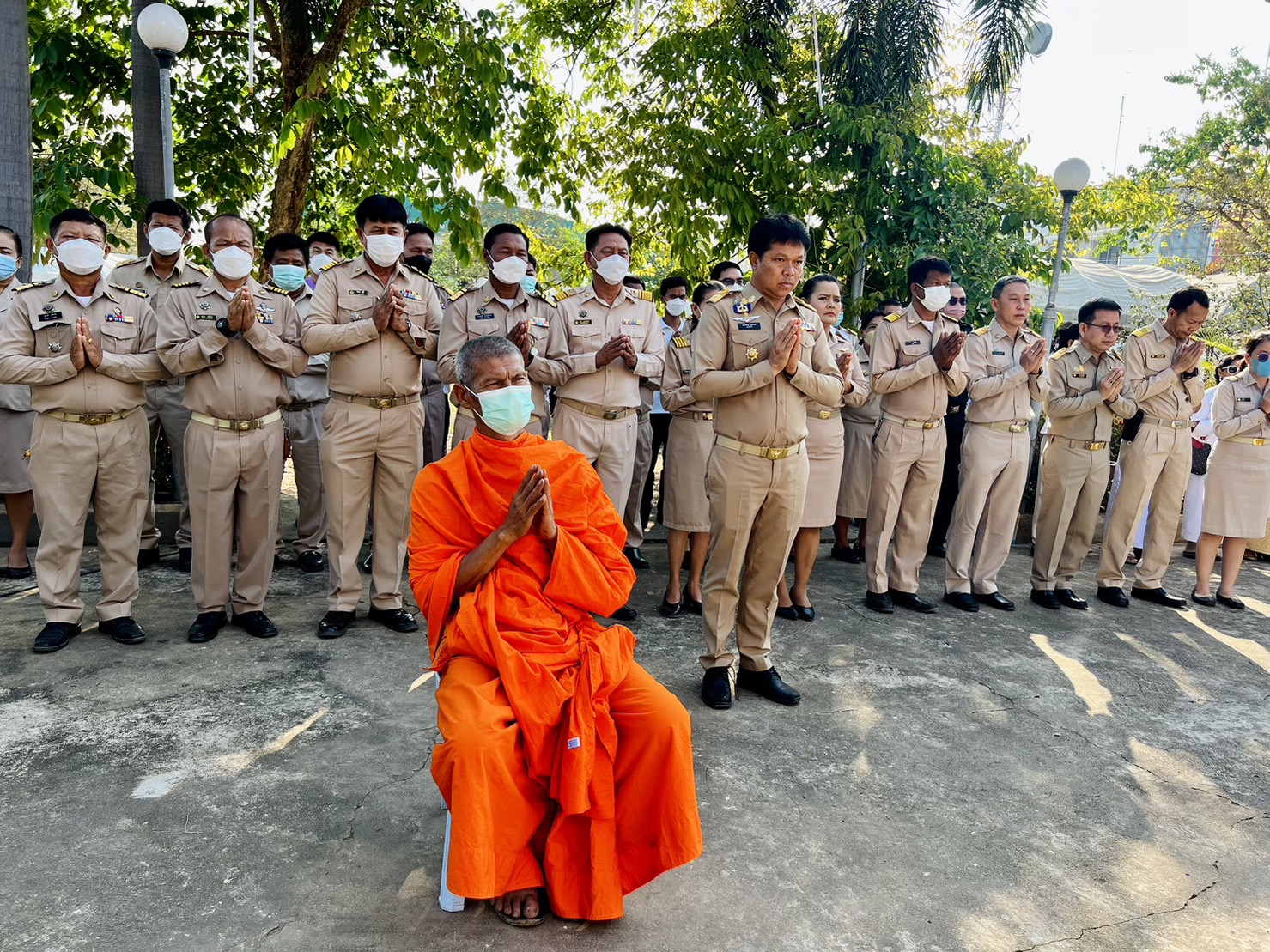 เจ้าหน้าที่ตำรวจสถานีตำรวจภูธรดงประคำ , หัวหน้าส่วนราชการอำเภอพรหมพิราม, คณะครู , นายกองค์กรปกครองส่วนท้องถิ่น, กำนัน , ผู้ใหญ่บ้าน, สมาชิกกิ่งกาชาด อ.พรหมพิราม, พ่อค้า และประชาชน ณ ศาลพระพรหม หน้าที่ว่าการอำเภอพรหมพิราม จังหวัดพิษณุโลก