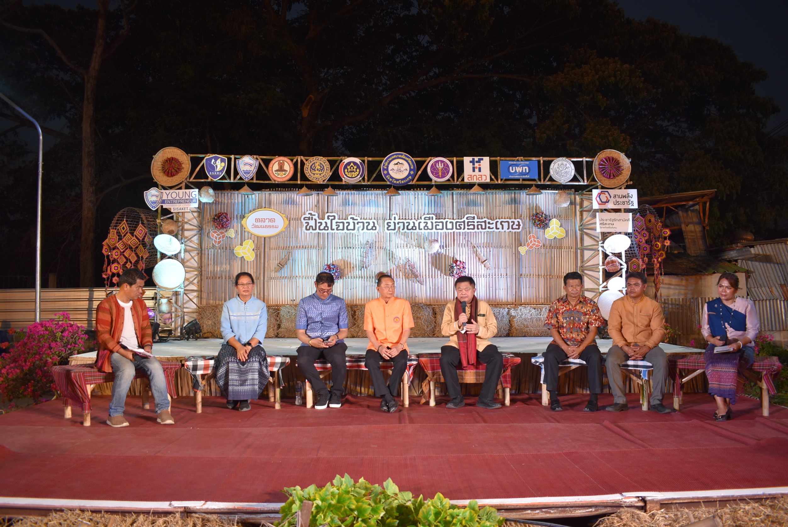 ดร.ฉัฐมงคล อังคสกุลเกียรติ นายกเทศมนตรีเมืองศรีสะเกษ กล่าวว่า เทศบาลเมืองศรีสะเกษ ร่วมกับ ภาคีเครือข่าย ภาครัฐ ภาคเอกชน ได้มีแนวคิดตกผลึกร่วมกัน ในการที่จะจัดตลาดวัฒนธรรม ขึ้นมา ภายใต้ชื่อ ตลาดวัฒนธรรม ฟื้นใจบ้าน ย่านเมืองศรีสะเกษ เพื่อที่จะให้โอกาสพี่น้องประชาชนชาวจังหวัดศรีสะเกษ ได้นำสินค้าพื้นบ้านที่มีวัฒนธรรมยาวนาน ออกมาสู่ชุมชน และสร้างรายได้ขึ้น ซึ่งชุมชนในเขตเทศบาลเมืองศรีสะเกษ เรามีประมาณ กว่า 40 ชุมชน แต่ละชุมชน ก็มีสินค้าที่เป็นเอกลักษณ์แตกต่างกันไป จังหวัดศรีสะเกษของเรา มีสินค้าที่เป็นของดีอยู่แล้ว เราต้องเอาออกมาแสดงให้ประชาชนดู นอกจากนี้ ยังมี หลักฐานภาพถ่ายประวัติศาสตร์เมืองศรีสะเกษ ตั้งแต่สมัยโบราณ ซึ่งหาดูได้ยาก บางภาพมีอายุ 50 – 60 ปี อีกทั้ง ศิลปะการแสดงพื้นบ้าน ไม่ว่าจะเป็นหมอลำคู่ ซึ่งทุกวันนี้ สามารถหาดูได้ยาก ก็จะนำมาทุกท่านได้รับชม