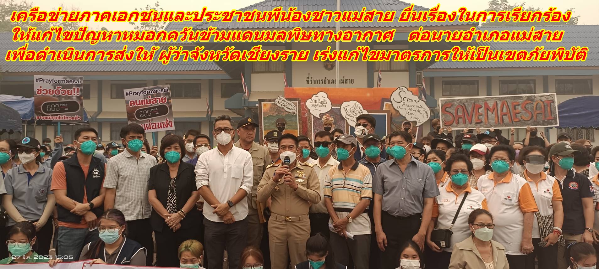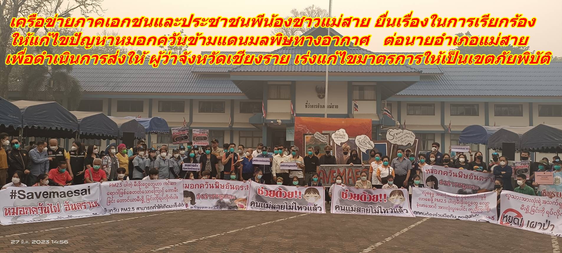 พี่น้องประชาชนชาวแม่สาย ยื่นเรื่องเรียกร้องต่อ นอภ.แม่สาย ส่งเรื่องให้ ผวจ.เชียงราย เร่งแก้ไขปัญหาหมอกควันมลพิษทางอากาศให้เป็นเขตภัยพิบัติ