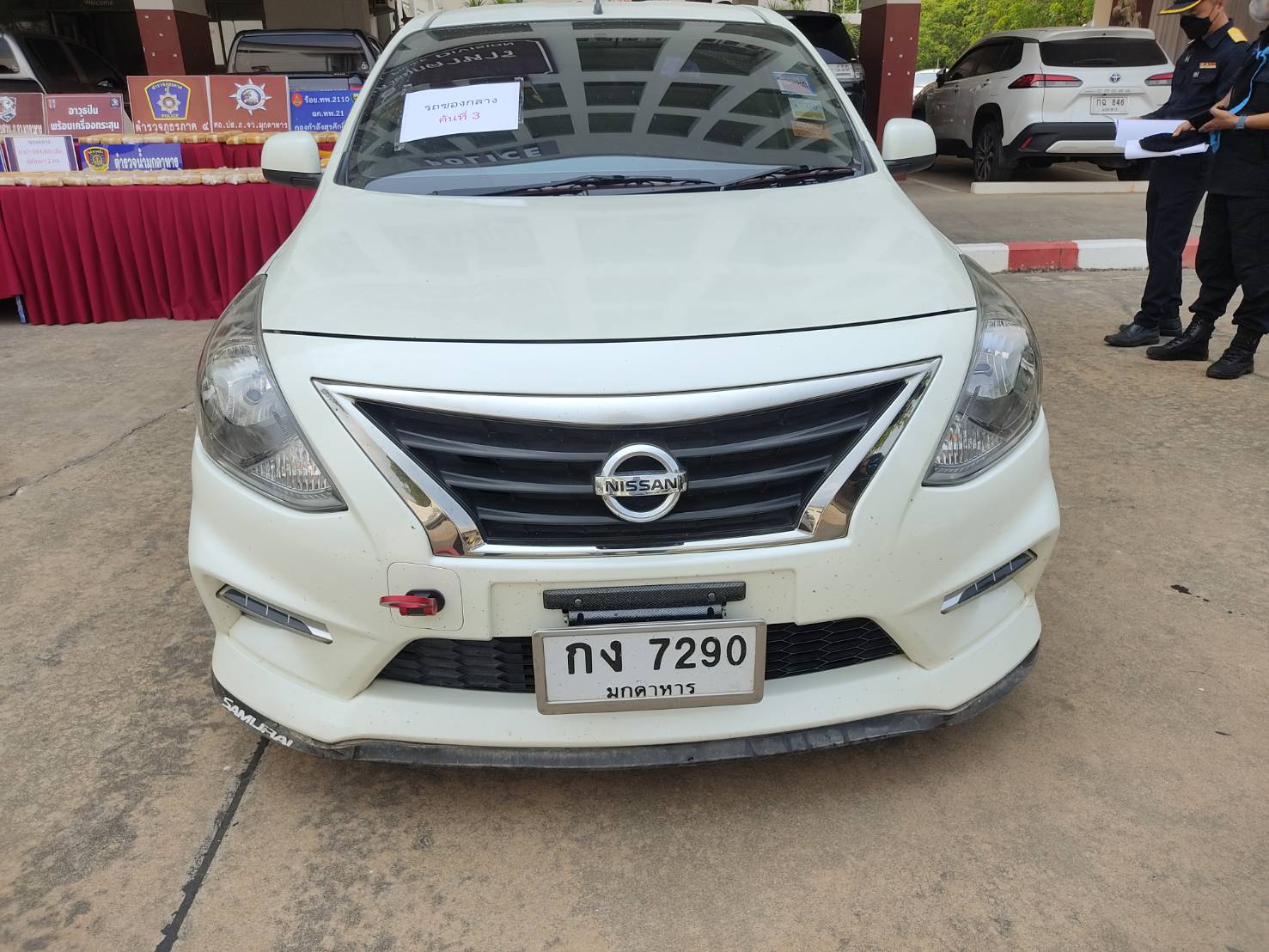 เจ้าหน้าที่ตำรวจได้แสดงตนค้นรถเก๋งคันดังกล่าวยี่ห้อนิสสัน รุ่นอัลมิร่าสีขาวทะเบียน กง 7290 มุกดาหารพบกระสอบว่างอยู่ท้ายรถ เมื่อตรวจสอบด้านในเป็น ยาบ้า จำนวน 6 กระสอบ /ประมาณ 994,000เม็ด และ อาวุธปืนพกสั้นยี่ห้อซิกเซาเออร๋ รุ่น P365 จำนวน 1 กระบอก พร้อมกระสุน 12 นัด ได้สอบถามเบื้องต้นทั้งสองคนให้การว่าเป็นของตนเองจะนำไปส่ง