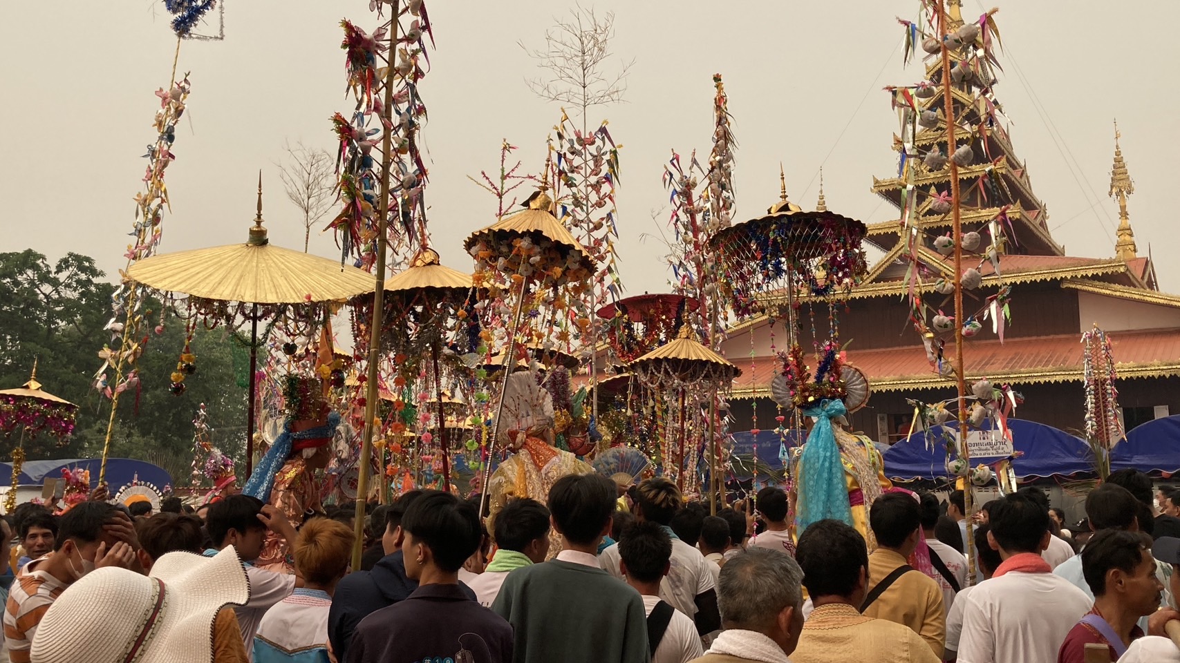 31 มีนาคม 2566 ท่ามกลางอากาศขมุกขมัวแย่ลงเรื่อยๆเพราะประเทศเพื่อนบ้านเผาป่าควันไหลมาทางชายแดนเต็มๆ ทางพี่น้องไทยพุทธก็ยังคงสืบสานประเพณีบวชส่างลองทุกปี ในปีนี้ที่วัดเวียงหวาย หรือวัดสุนทราวาศ บ้านเวียงหวาย ตำบลม่อนปิ่น อำเภอฝาง จังหวัดเชียงใหม่ ได้จัดพิธีบวชส่างลองตามขนบธรรมเนียมประเพณีของล้านนา เหมือนทุกๆปีแต่ปีนี้พิเศษหารายได้สมทบสร้างพระธาตุเจดีย์ เพื่อเก็บพระธาตุใว้ให้คนสักการะตลอดจนคนรุ่นหลังๆ ประเพณีบวชส่างลอง หรือลูกแก้ว นั้นมีมานบนาน สืบต่อรุ่นลูกหลานมากัน