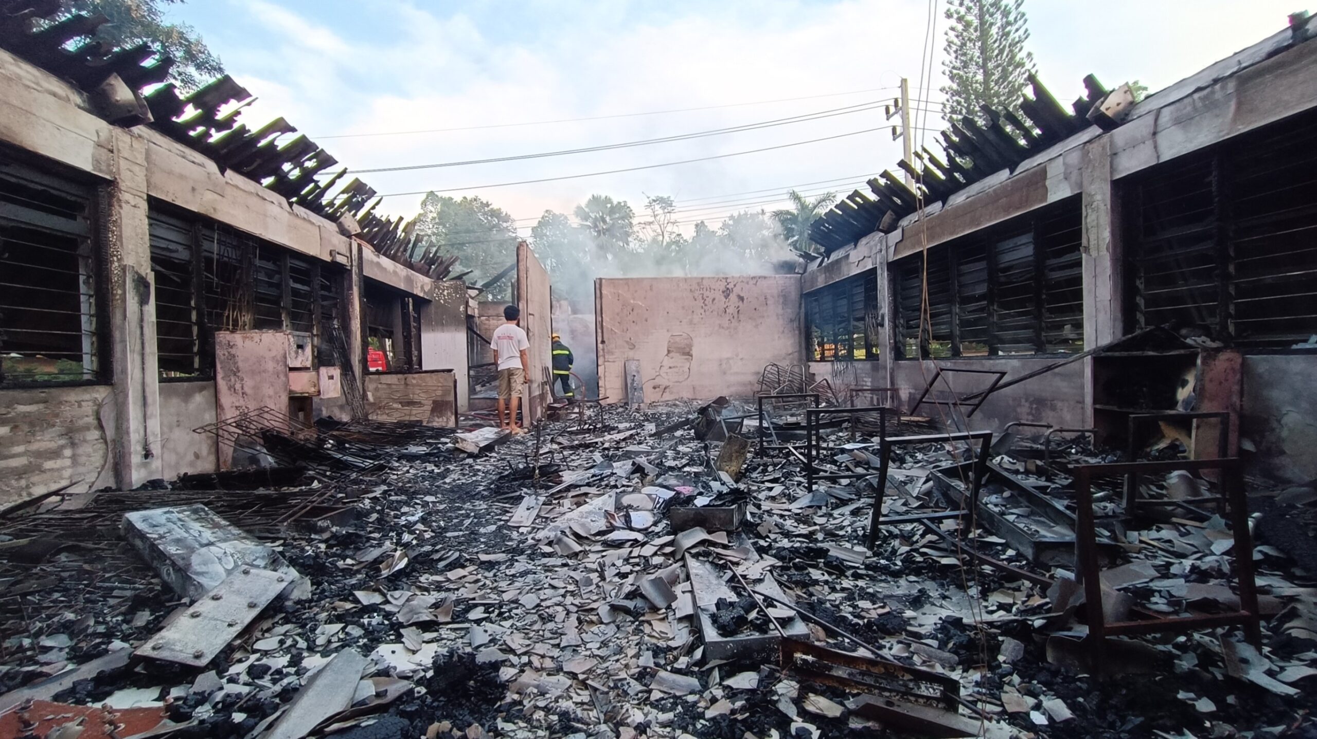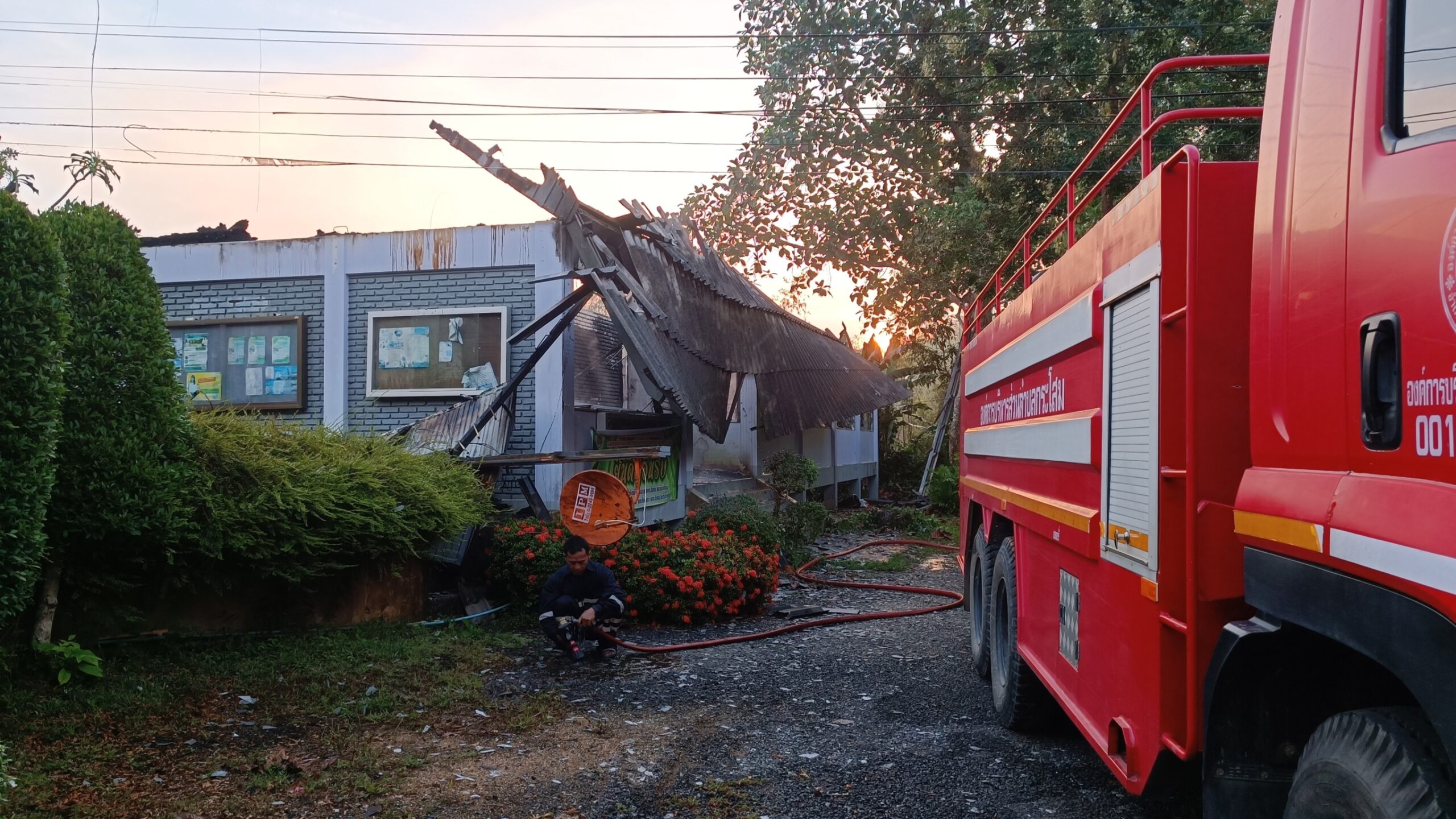 พังงา-ด่วน เกิดเหตุเพลิงไหม้อาคารในวิทยาลัยเกษตรและเทคโนโลยีวอดทั้งหลัง ตอนย่ำรุ่ง